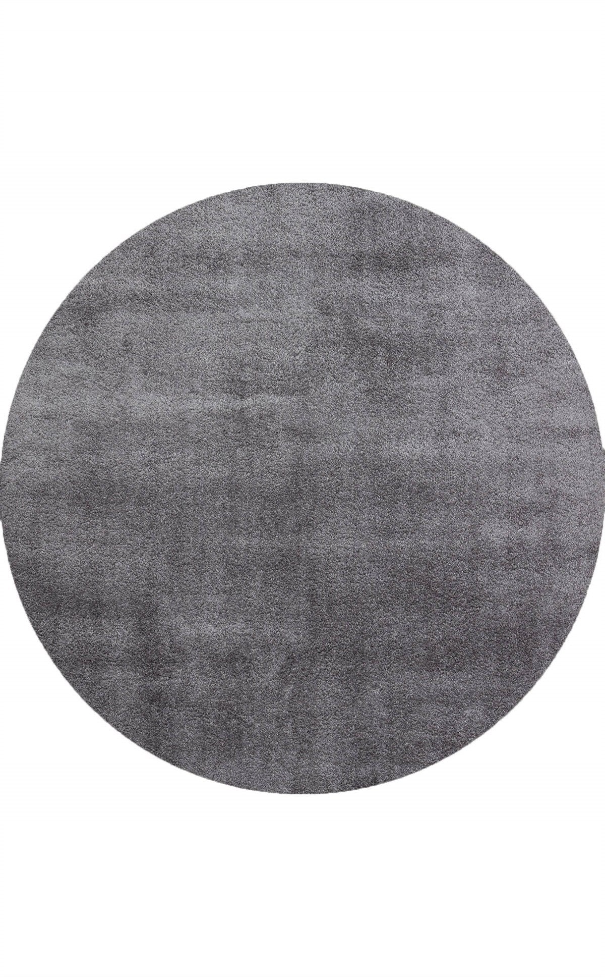 Modern Shaggy Rug - Anthracite Round Soft Textured Fluffy Pile Carpet