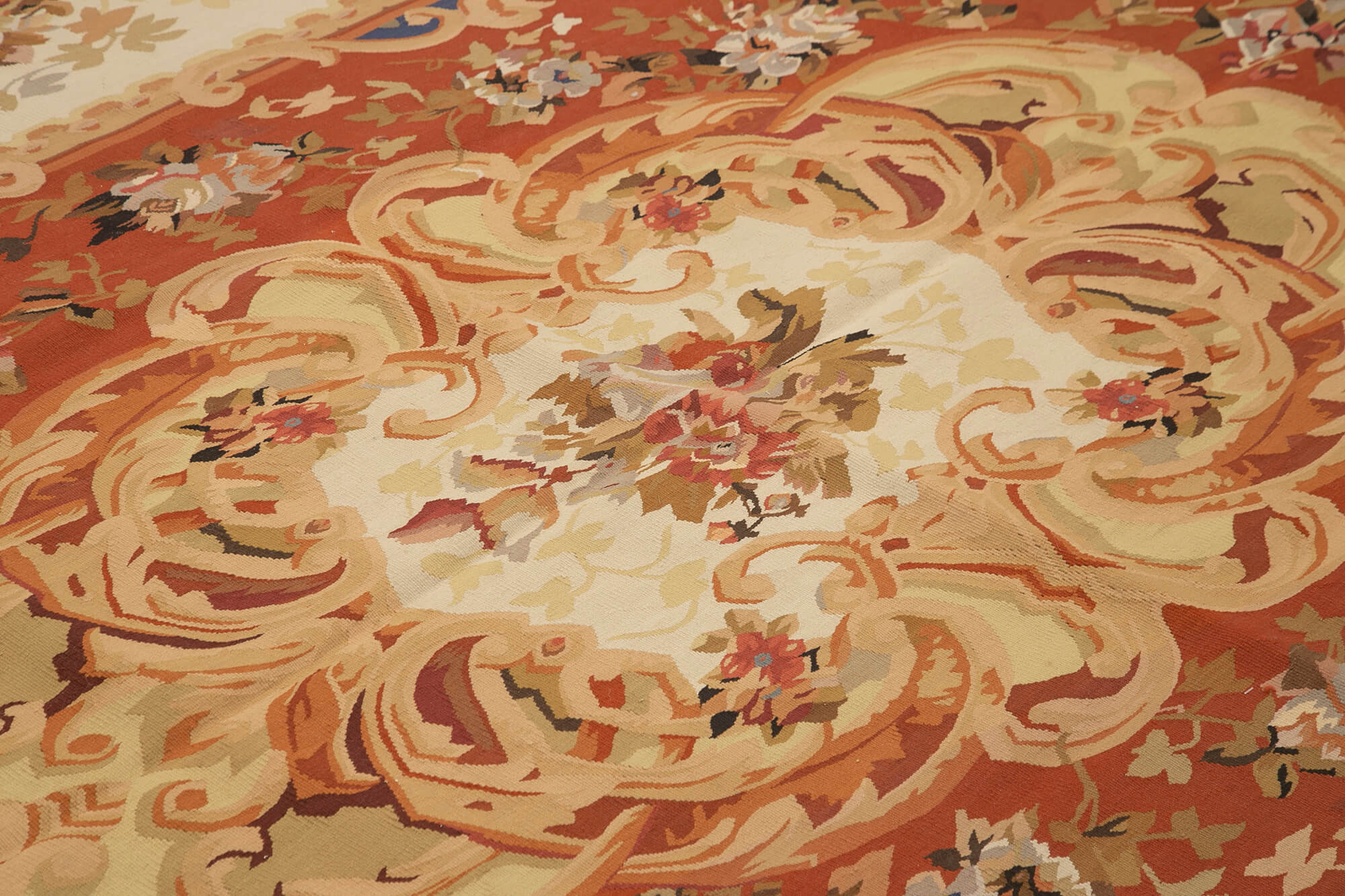 Aubusson Floral Beige Floral Cotton Wool Handmade Area Rug 9'0'' x 11'11''