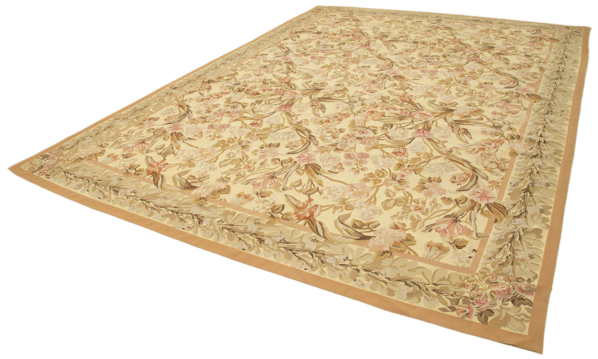Aubusson Floral Beige Floral Cotton Wool Handmade Area Rug 9'11'' x 14'0''