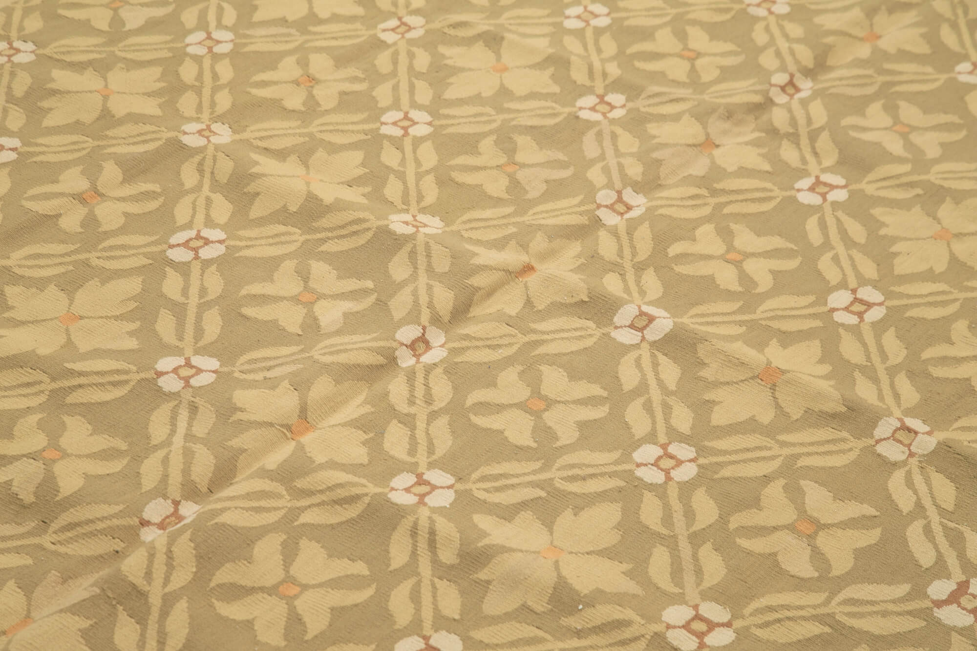 Handmade Area Rug – Brown Floral Cotton Wool Vintage Hand Woven Carpet 8'7''x12'