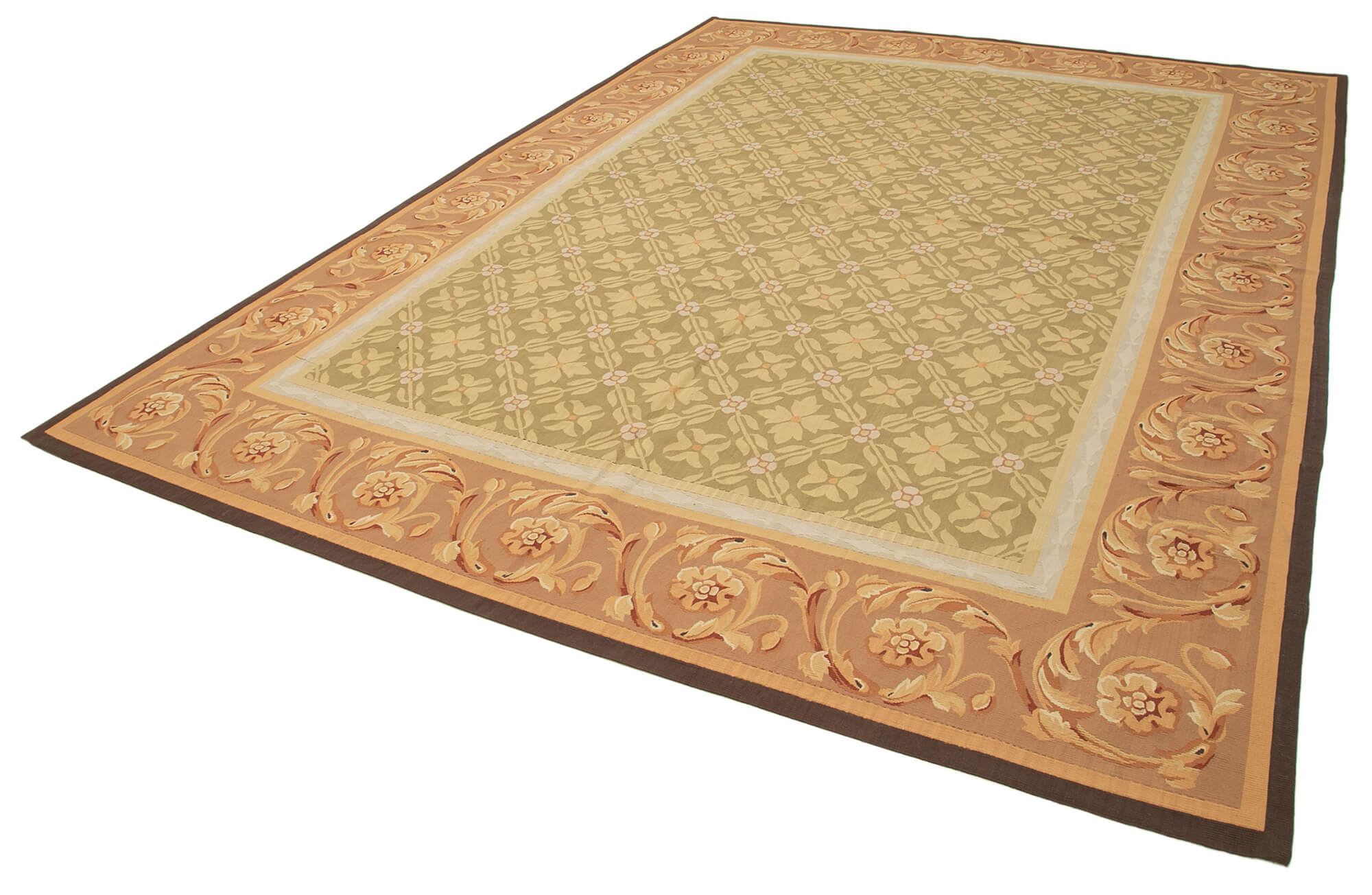 Aubusson Floral Brown Floral Cotton Wool Handmade Area Rug 8'8'' x 12'0''