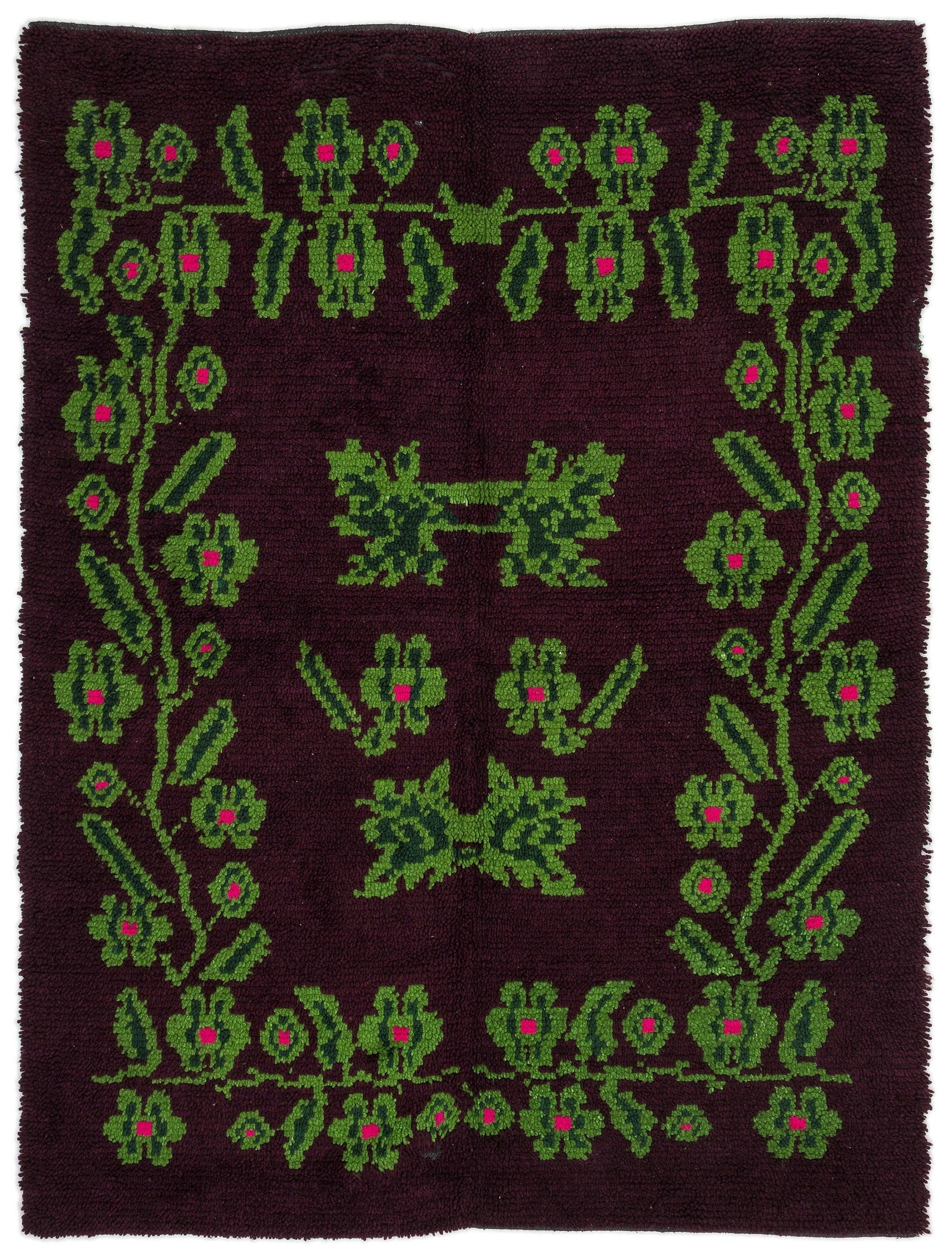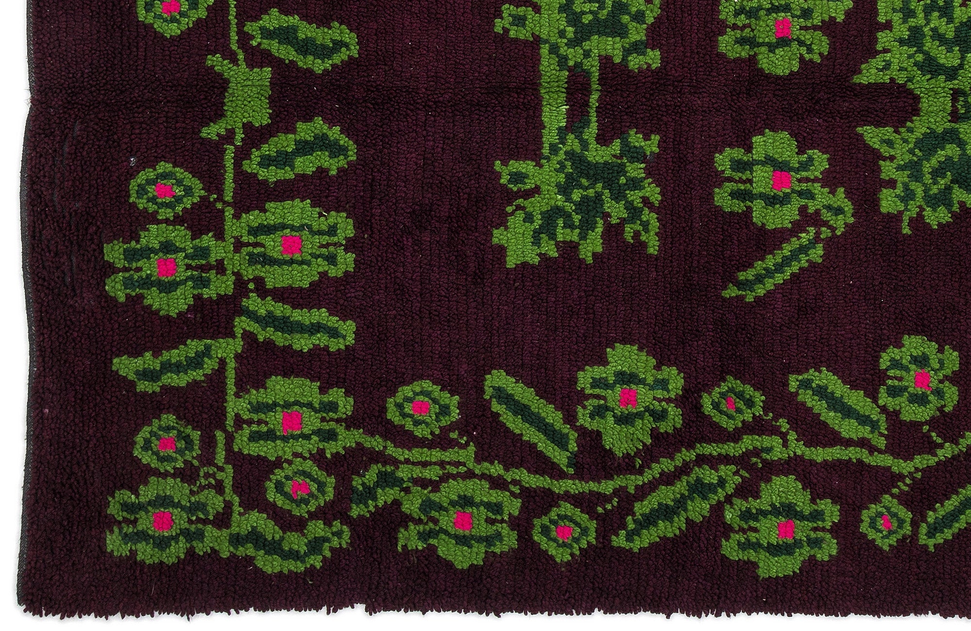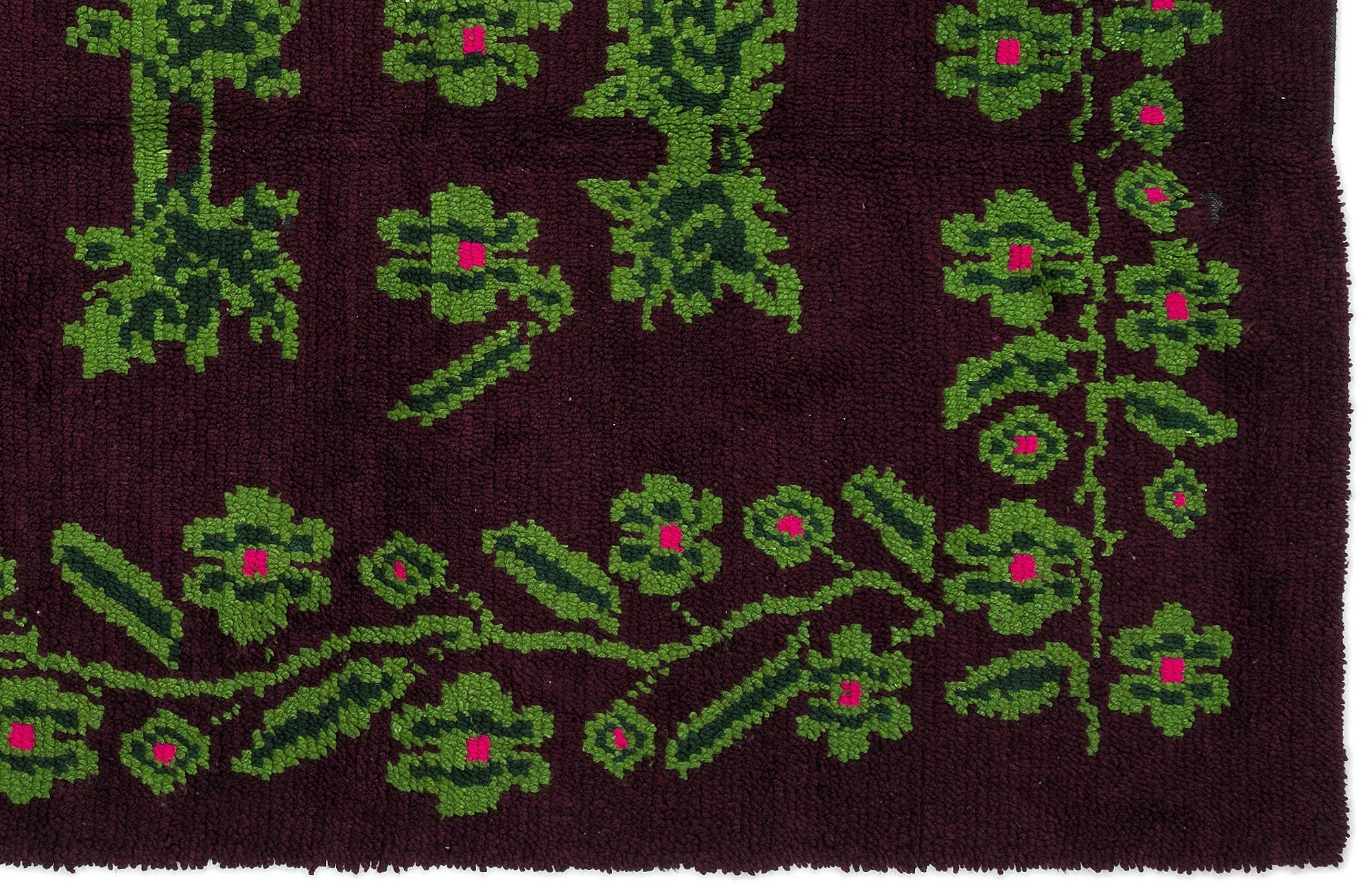 Girit Purple Floral Wool Handmade Area Rug 5'1" x 6'11"