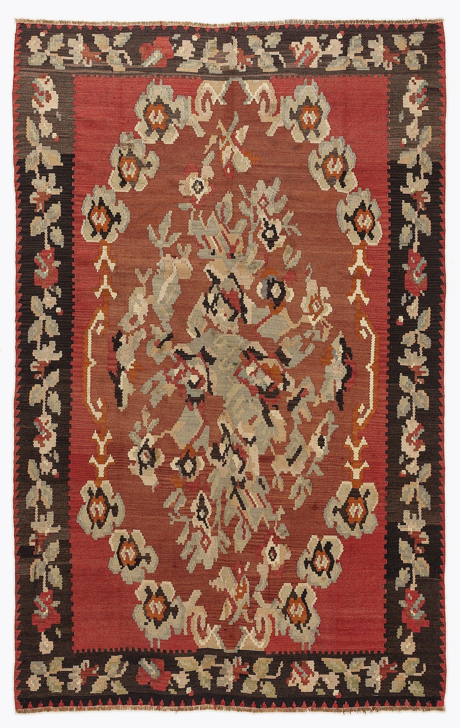 Girit Red Floral Wool Handmade Area Rug 5'6" x 9'10"