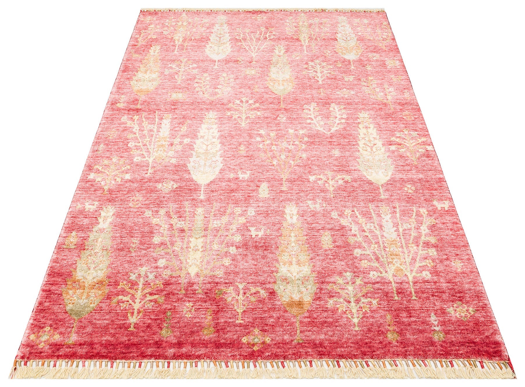 Handmade Viscose Rug – Modern Red Area Rug With Floral Pattern, Soft Texture