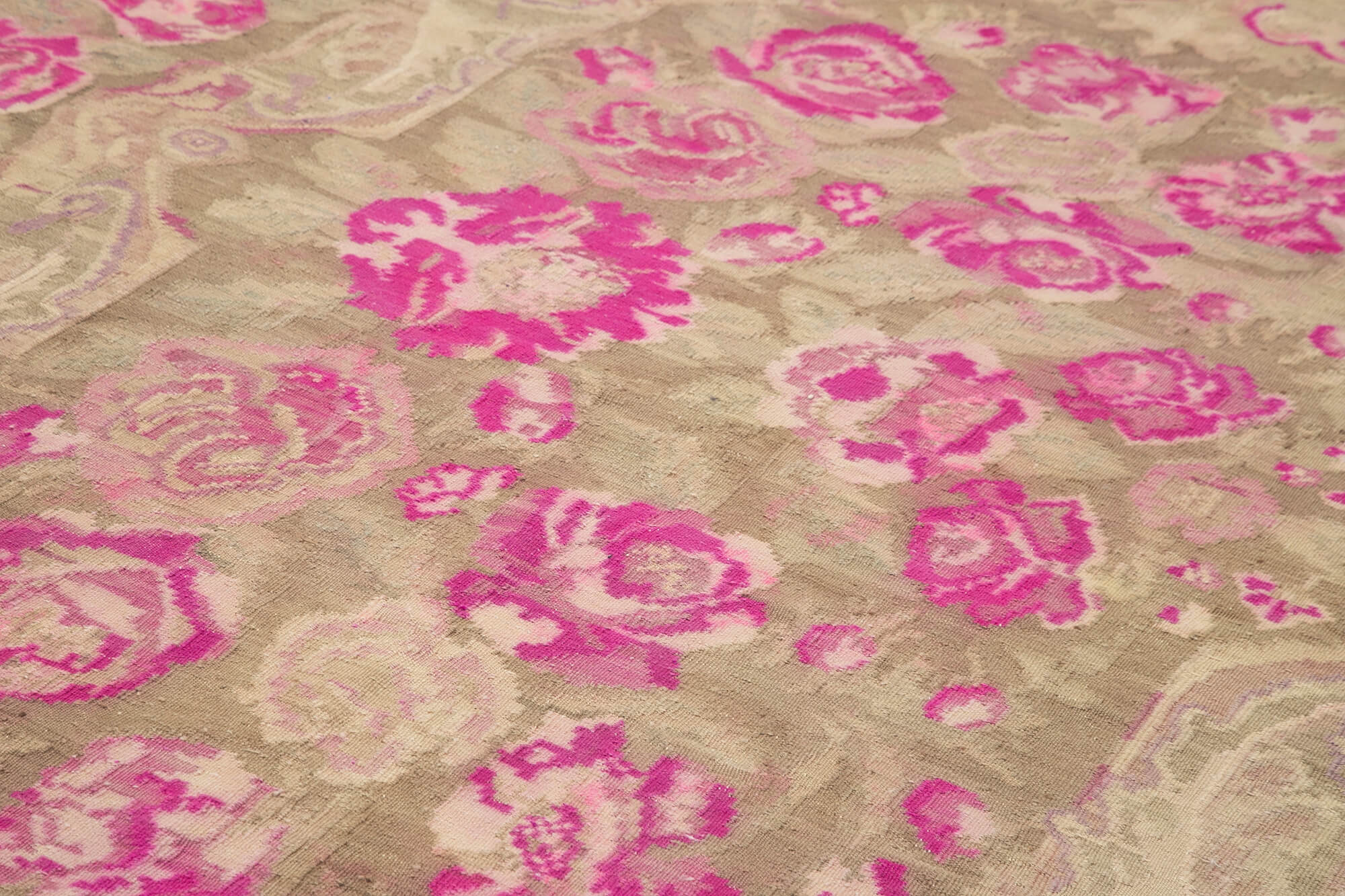 Moldovian Floral Beige Floral Cotton Wool Goat Hair Handmade Rug 7'1'' x 12'2''
