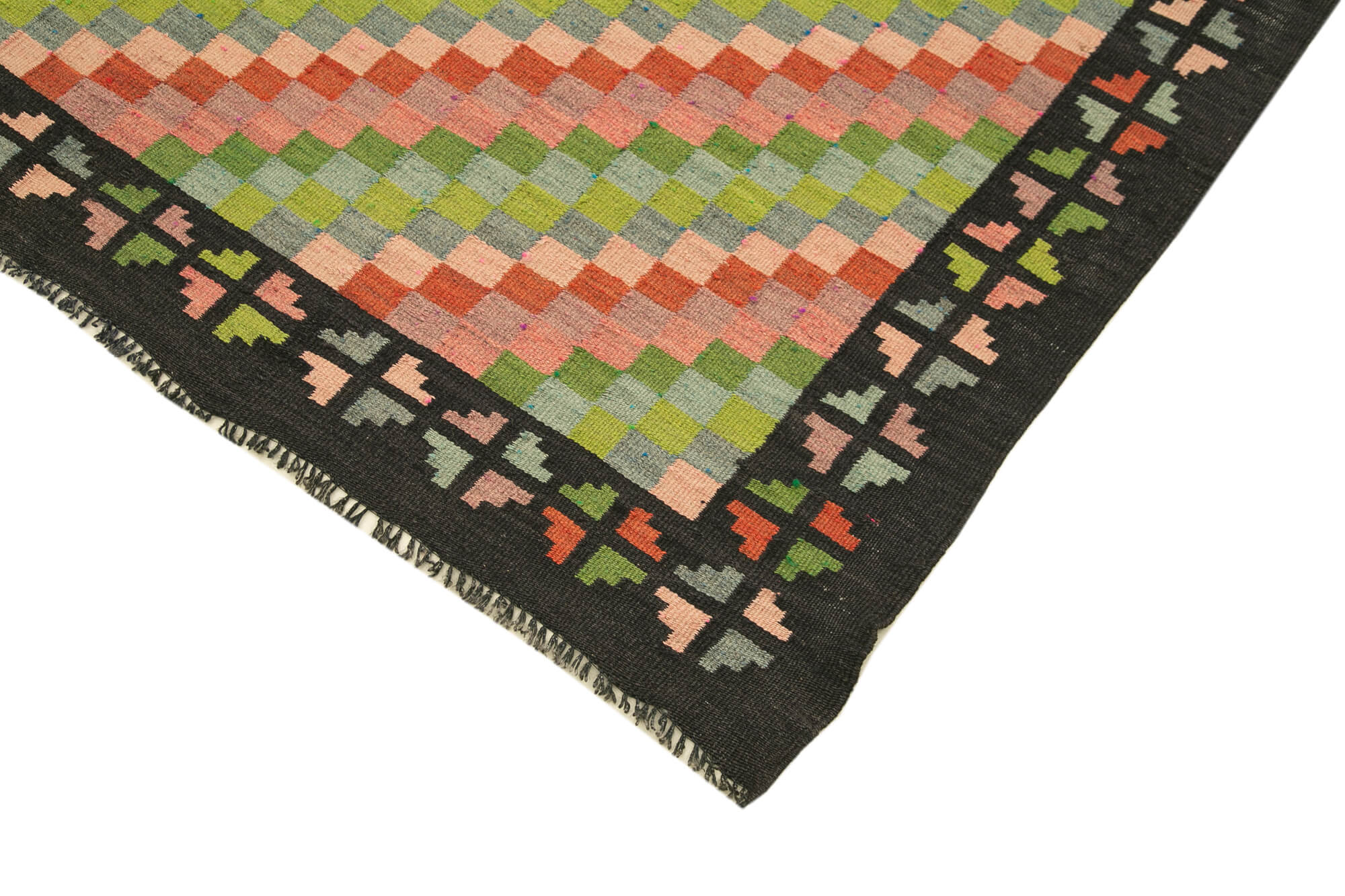 Moldovian Floral Black Floral Cotton Wool Goat Hair Handmade Rug 5'3'' x 10'5''