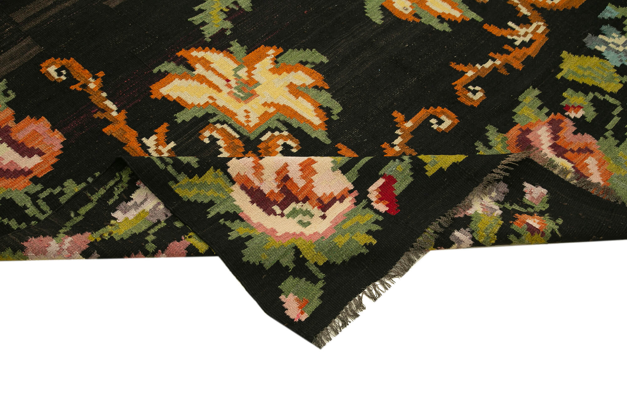 Moldovian Floral Black Floral Cotton Wool Goat Hair Handmade Rug 6'1'' x 11'8''