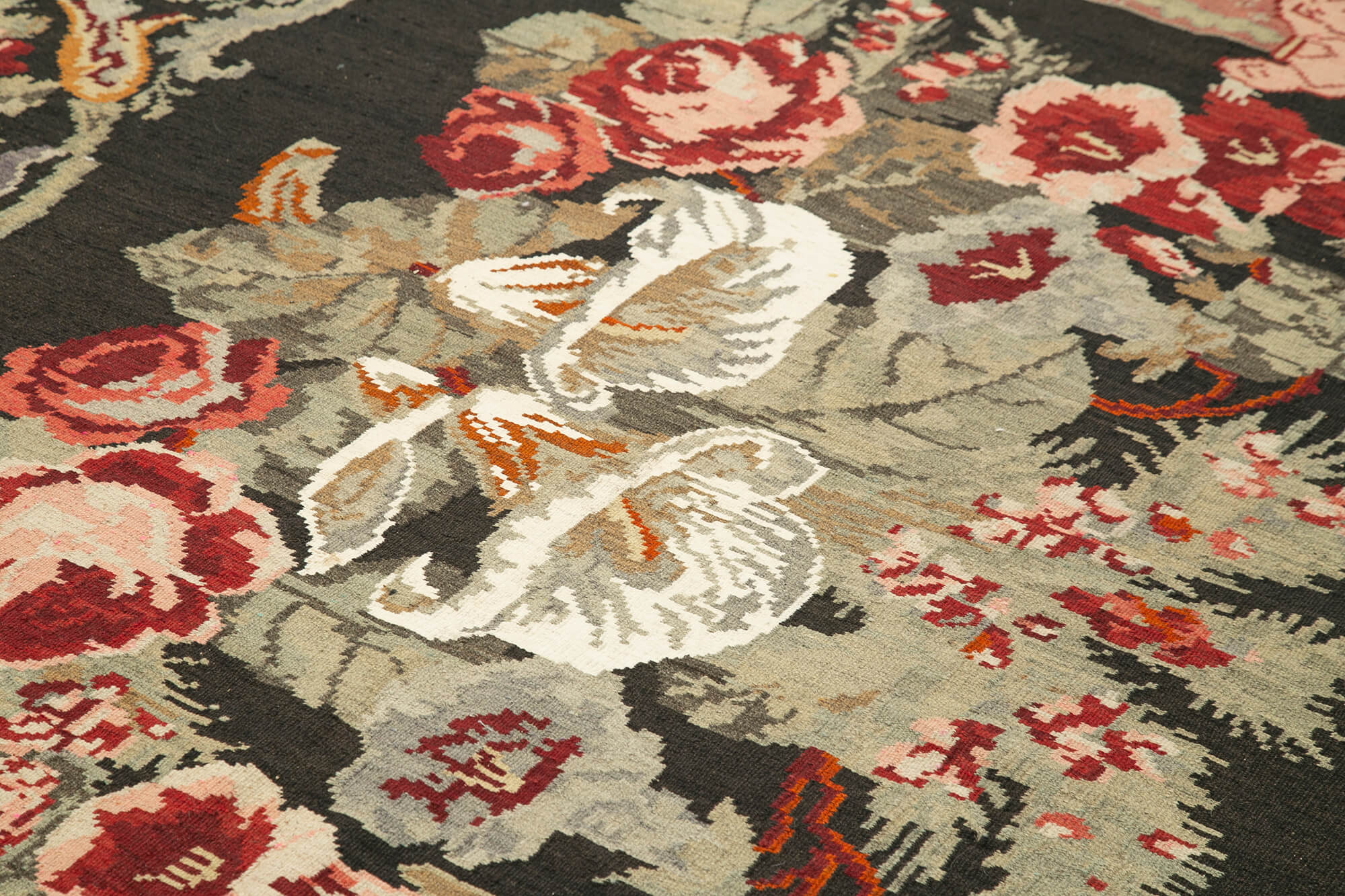 Moldovian Floral Black Floral Cotton Wool Goat Hair Handmade Rug 6'4'' x 9'7''