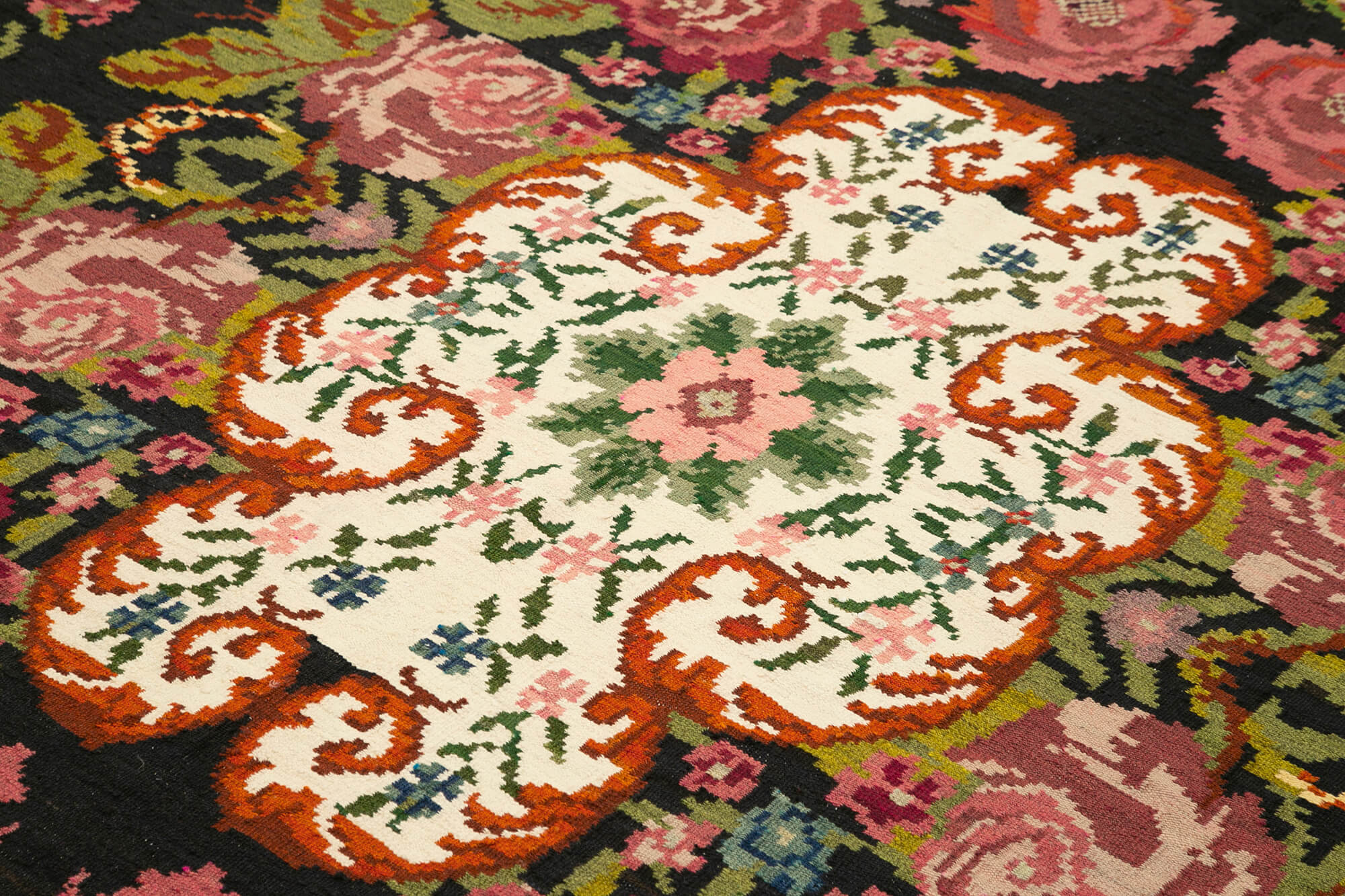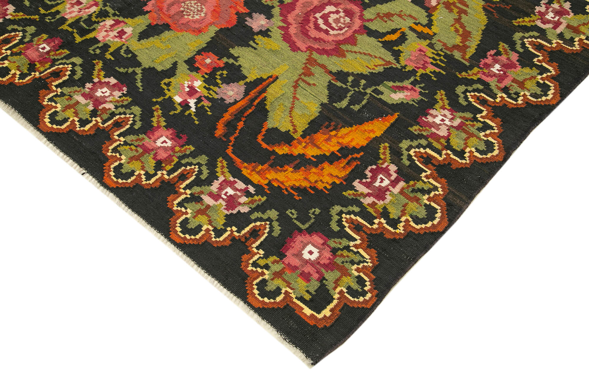 Moldovian Floral Black Floral Cotton Wool Goat Hair Handmade Rug 6'9'' x 8'6''