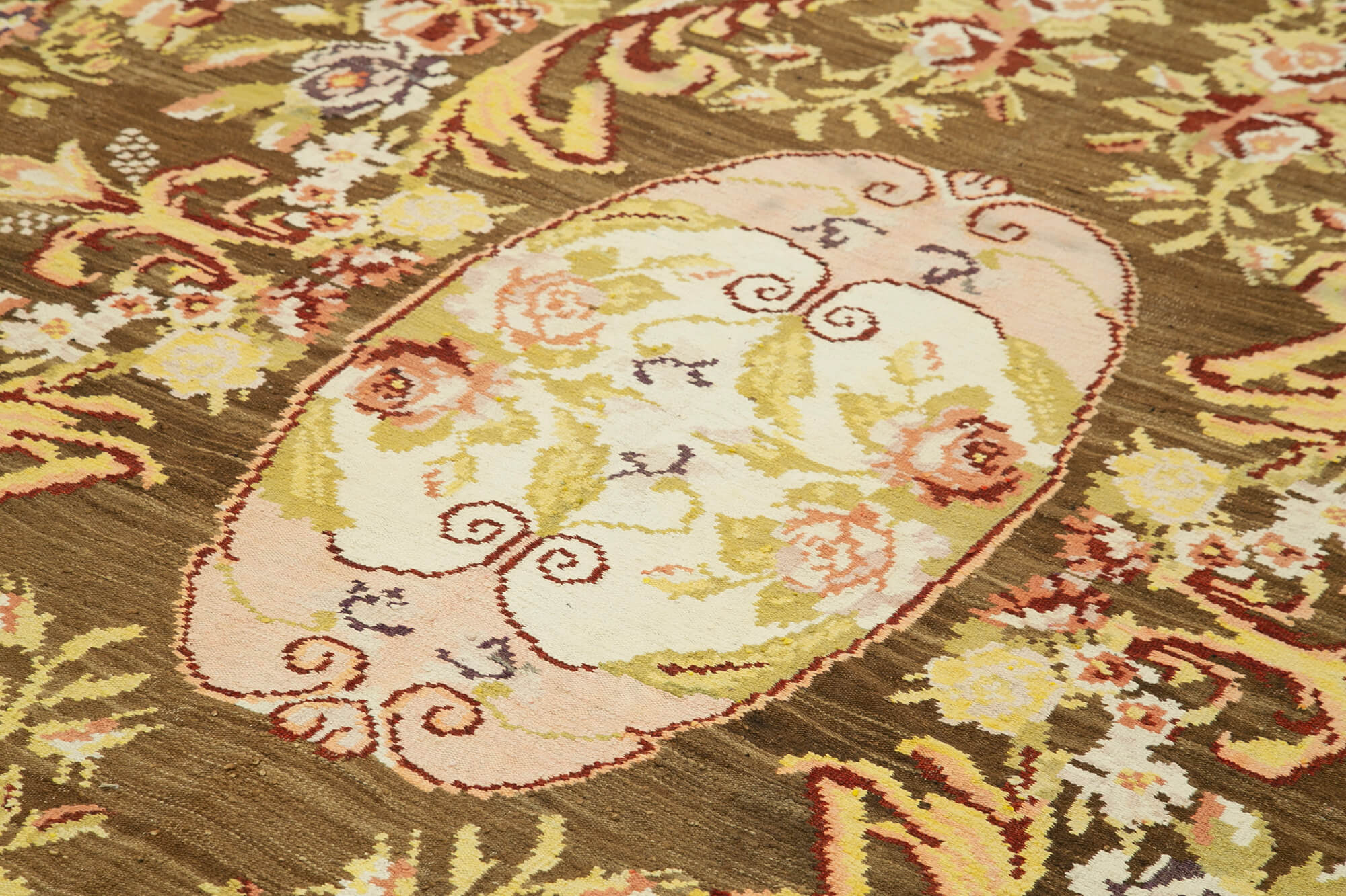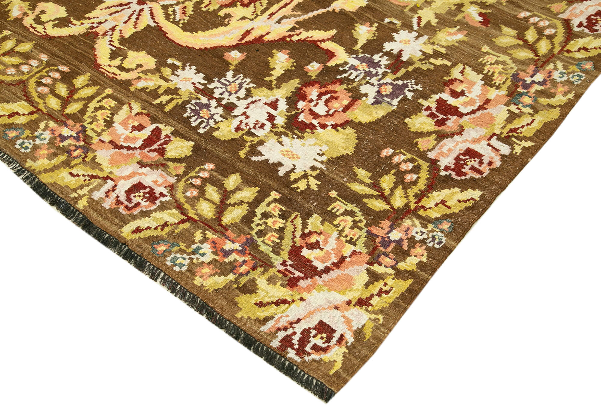 Moldovian Floral Brown Floral Cotton Wool Goat Hair Handmade Rug 6'9'' x 10'10''