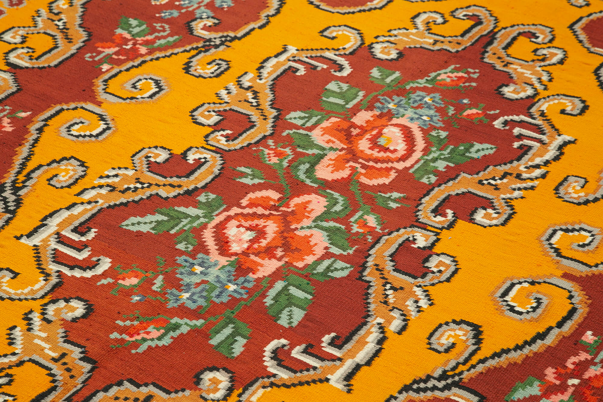 Moldovian Floral Red Floral Cotton Wool Goat Hair Handmade Rug 6'4'' x 9'0''