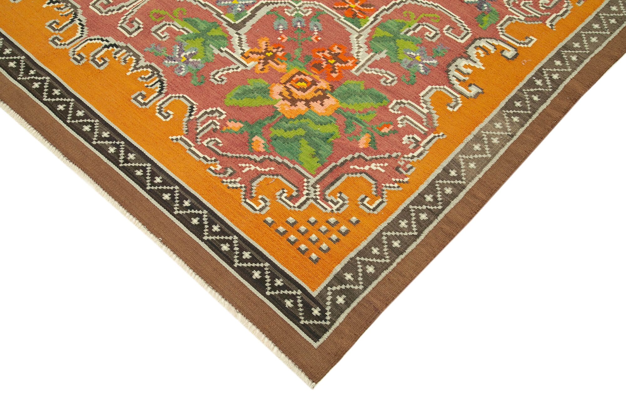 Moldovian Floral Yellow Floral Cotton Wool Goat Hair Handmade Rug 6'7'' x 9'4''