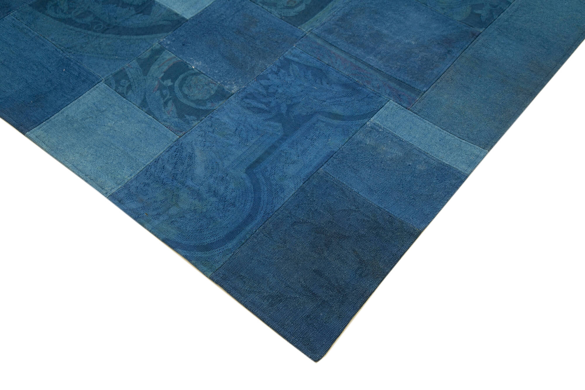Needlepoint Blue Floral Cotton Wool Handmade Area Rug 6'7'' x 9'11''