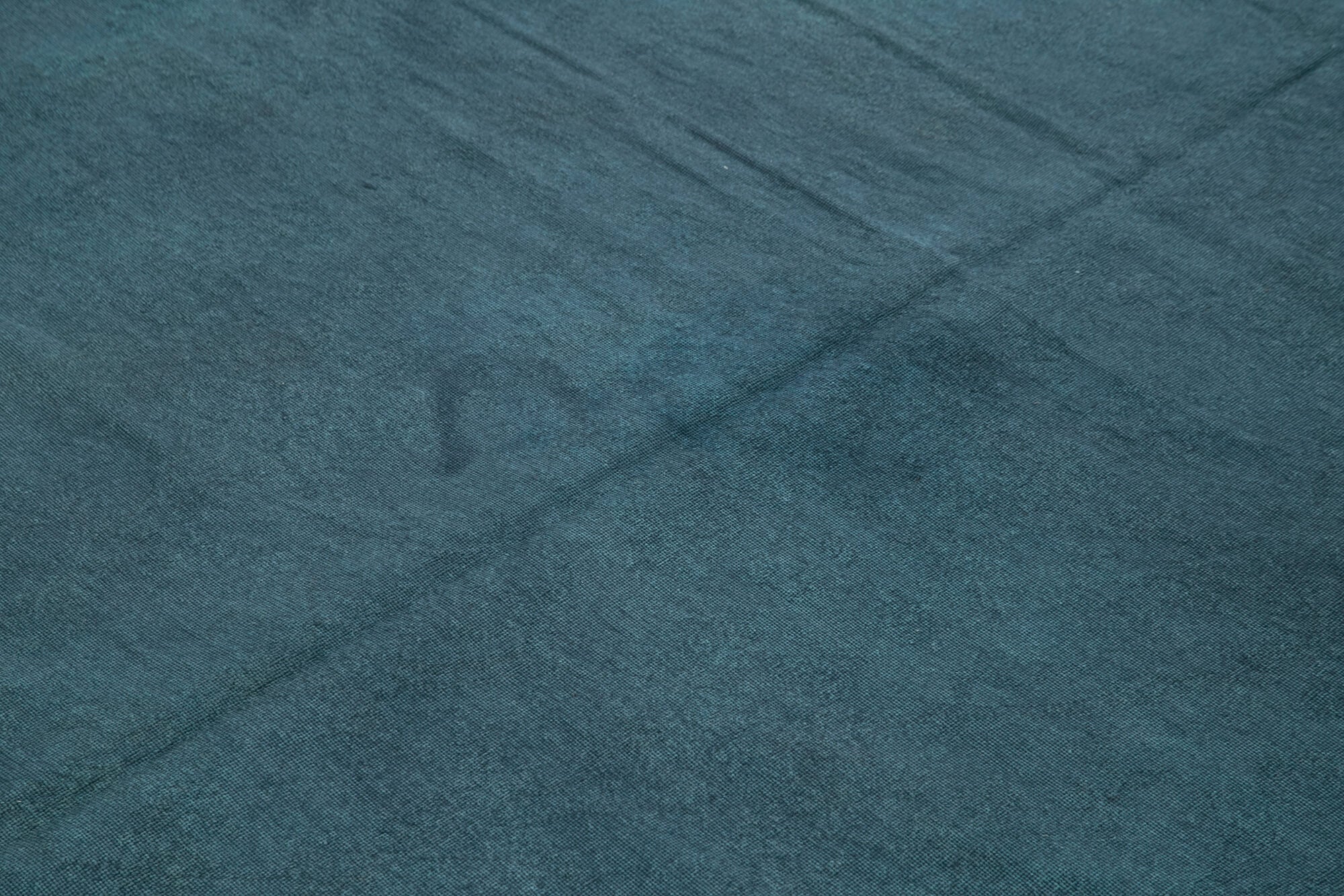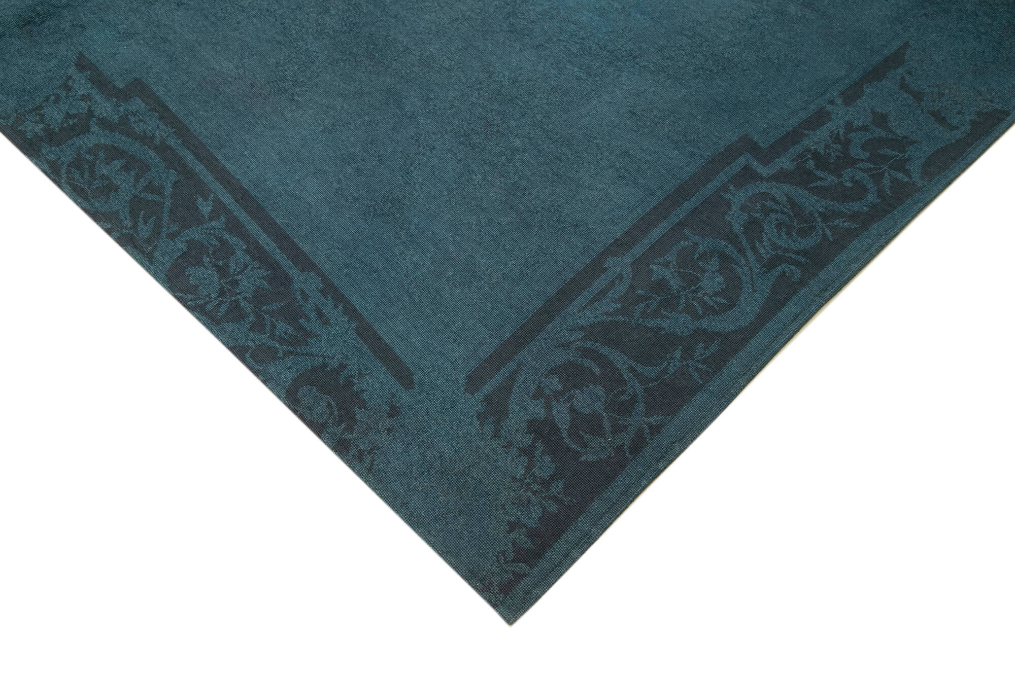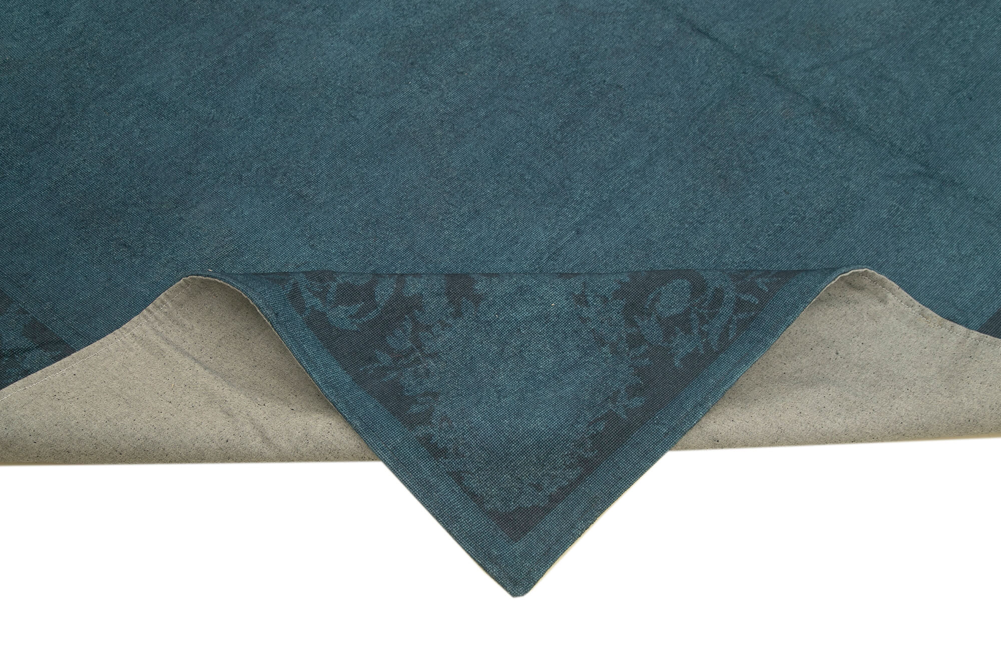 Handmade Area Rug – Blue Floral Pattern Cotton Wool Vintage Handwoven Carpet 7'1'' x 8'2''