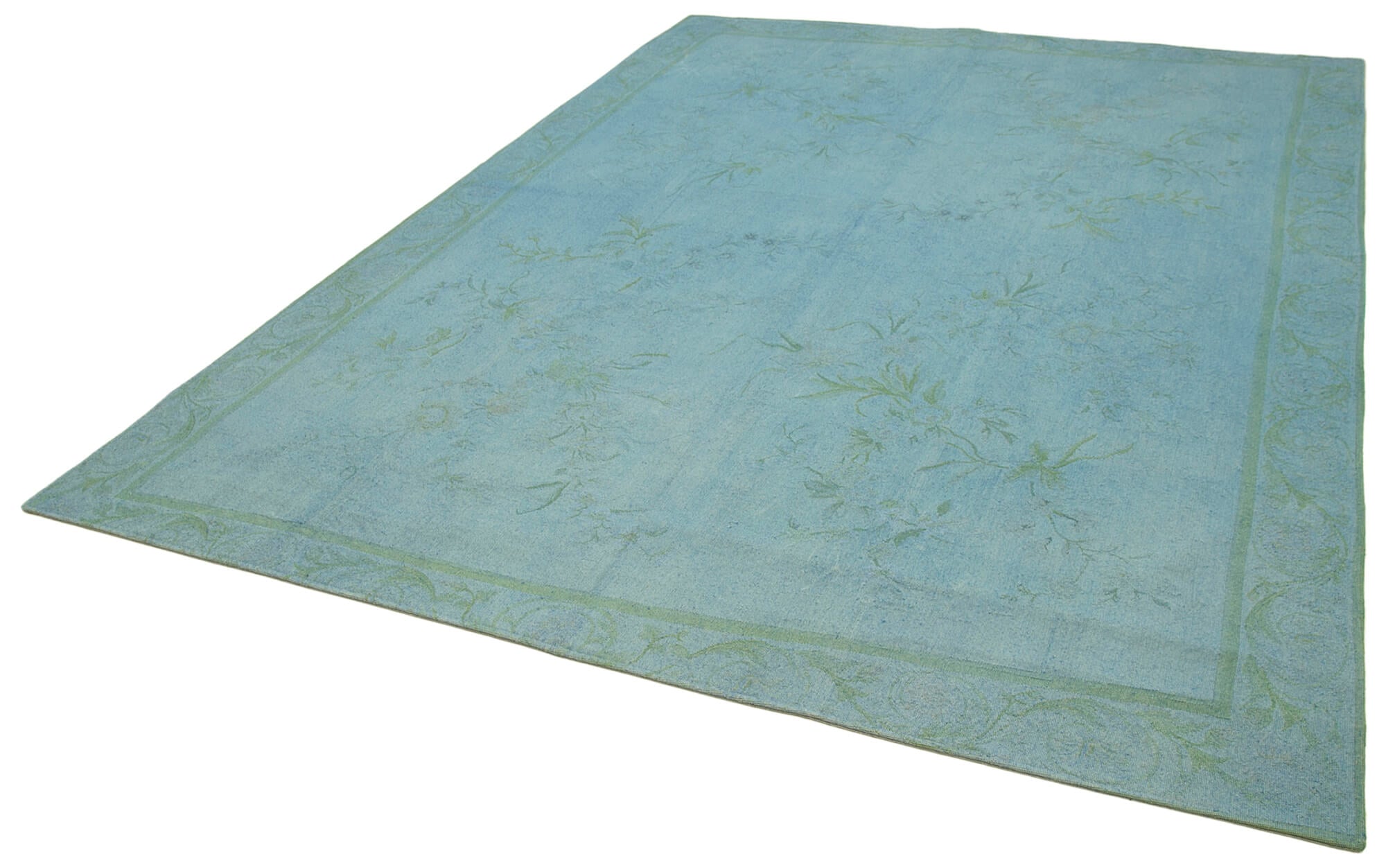 Needlepoint Blue Floral Cotton Wool Handmade Area Rug 7'9'' x 10'3''