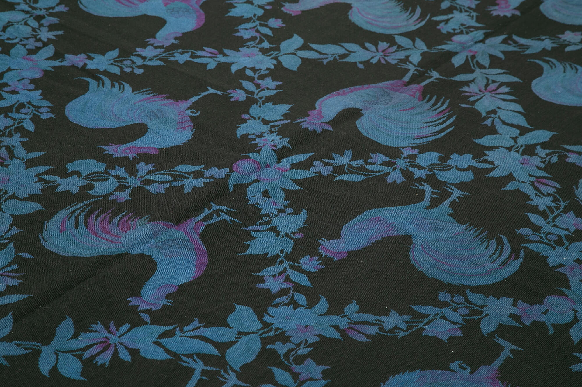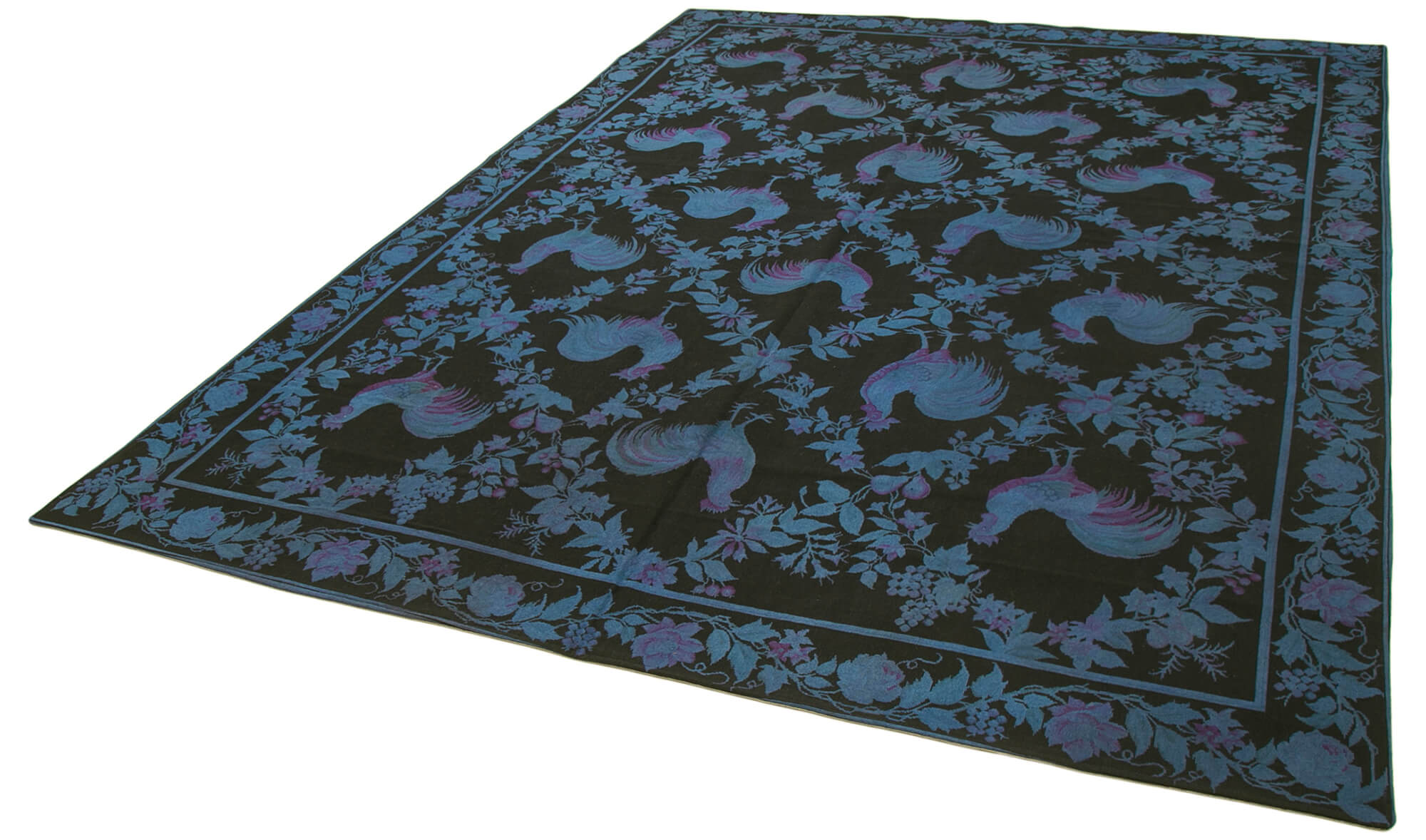 Needlepoint Blue Floral Cotton Wool Handmade Area Rug 7'10'' x 10'11''