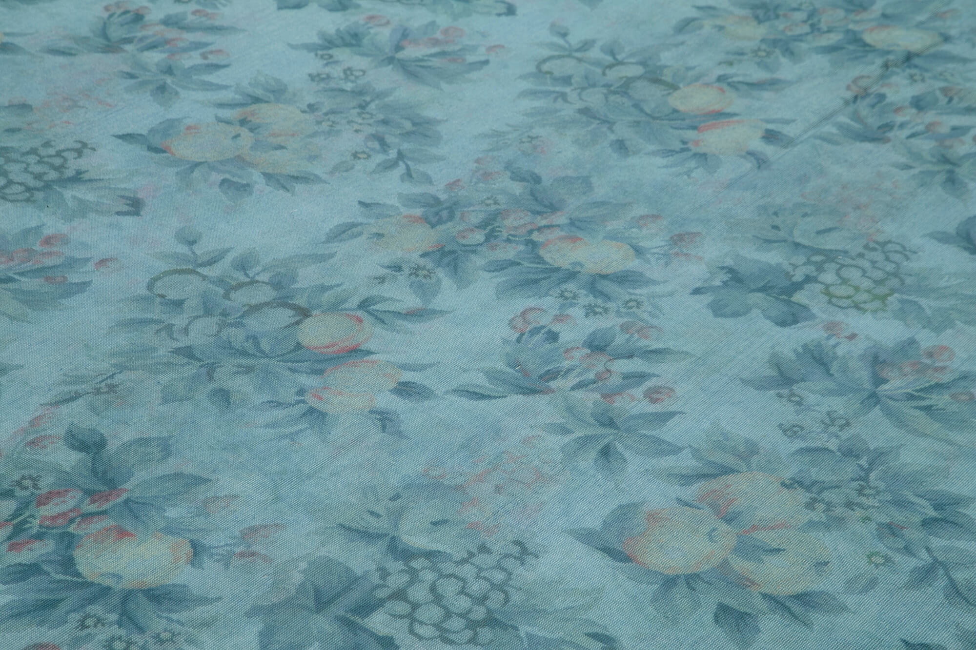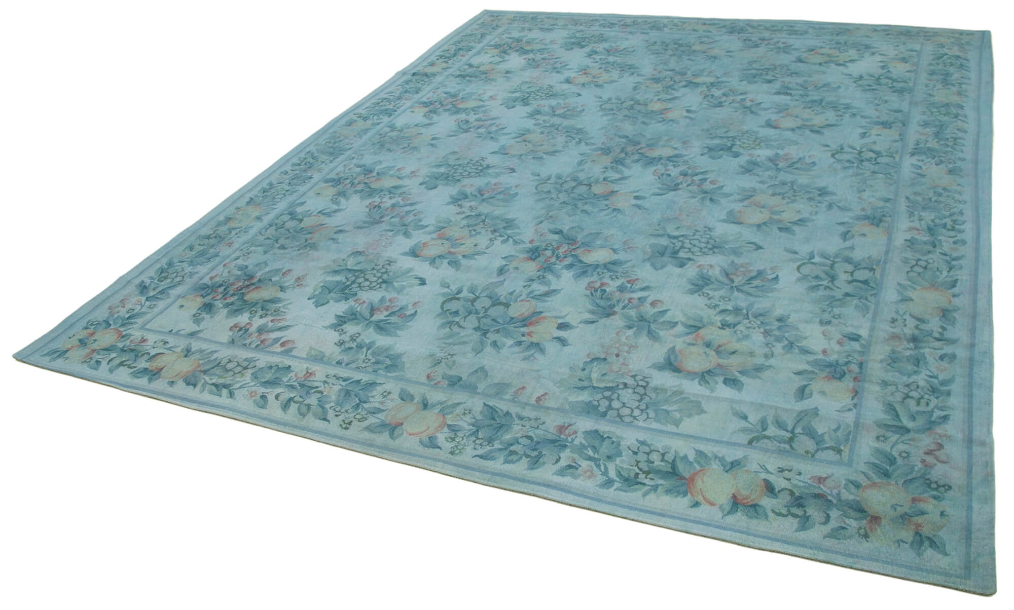 Needlepoint Blue Floral Cotton Wool Handmade Area Rug 8'4'' x 11'1''