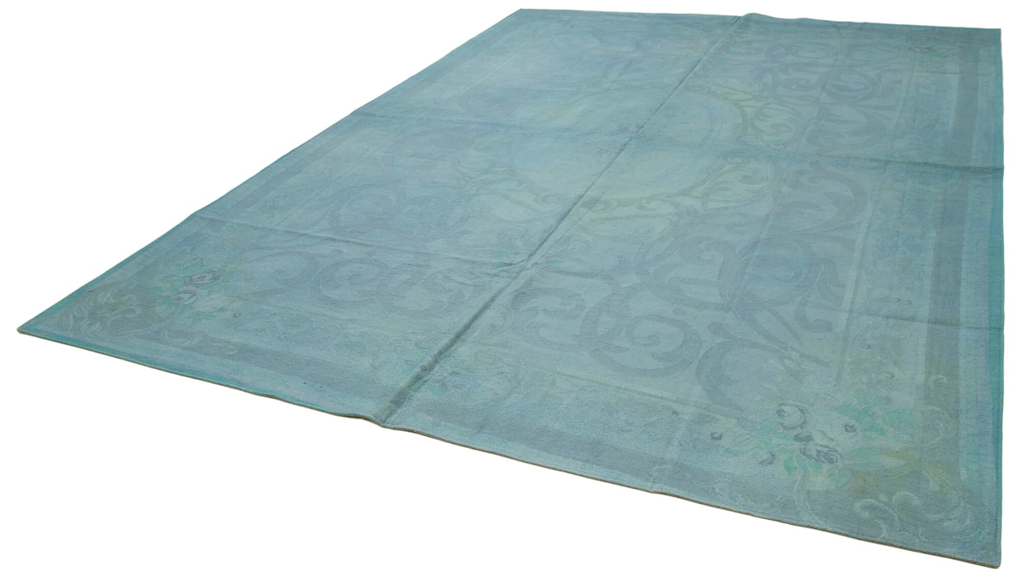 Handmade Area Rug – Blue Floral Pattern Cotton Wool Turkish Carpet 9'5''x12'8''