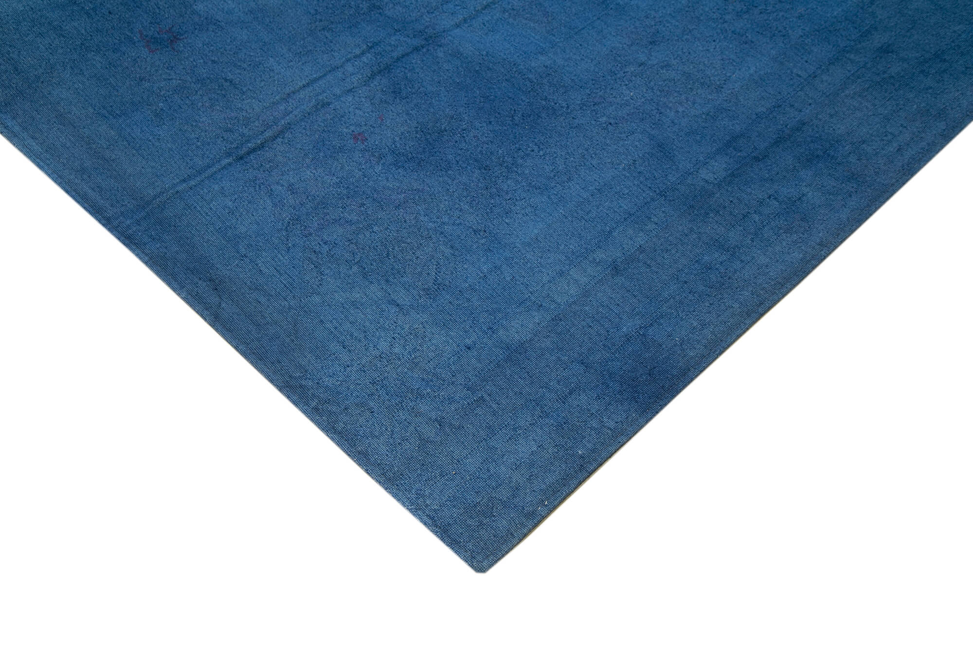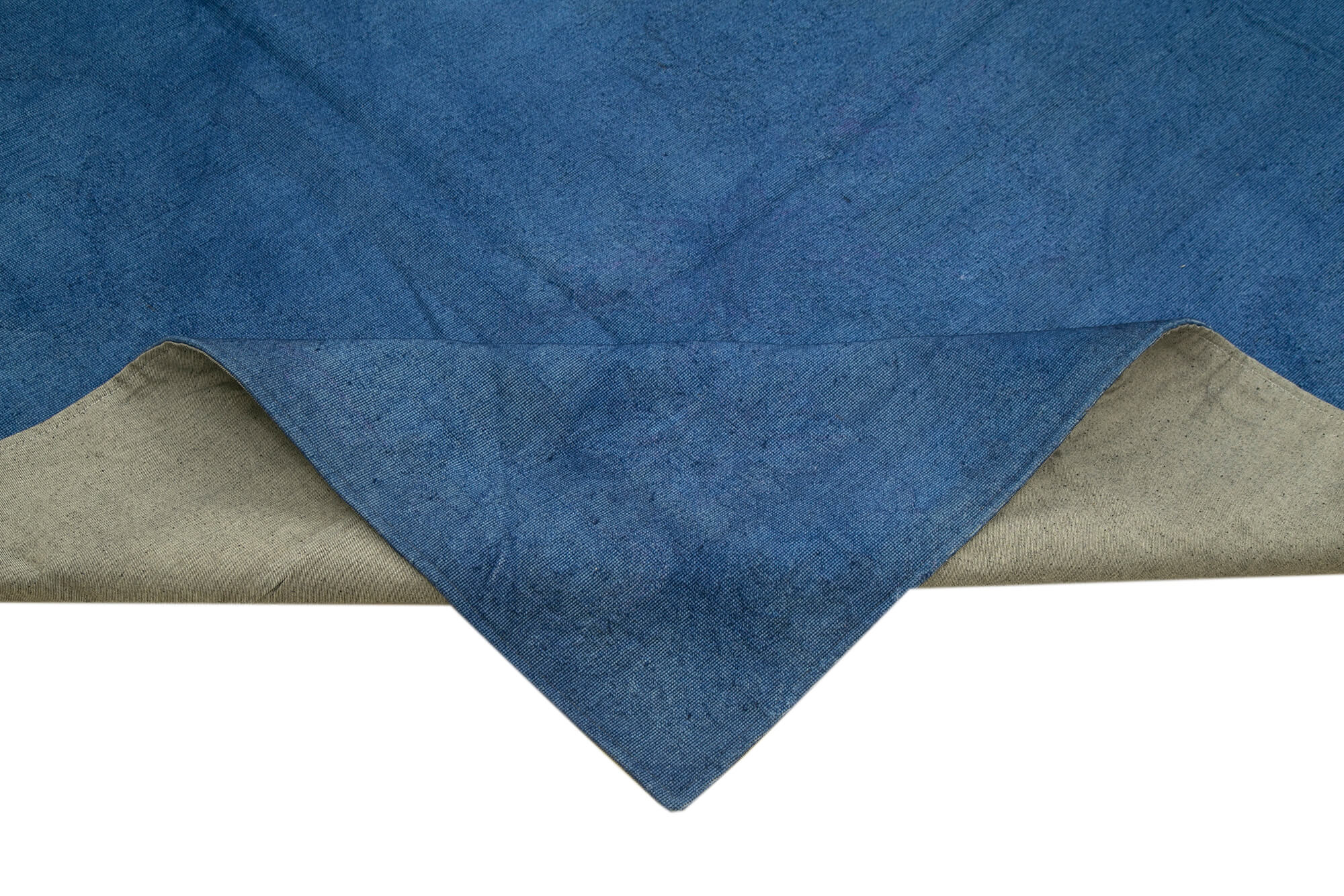 Handmade Area Rug – Blue Floral Vintage Handwoven Turkish Cotton Wool Carpet 11'5''x13'5''
