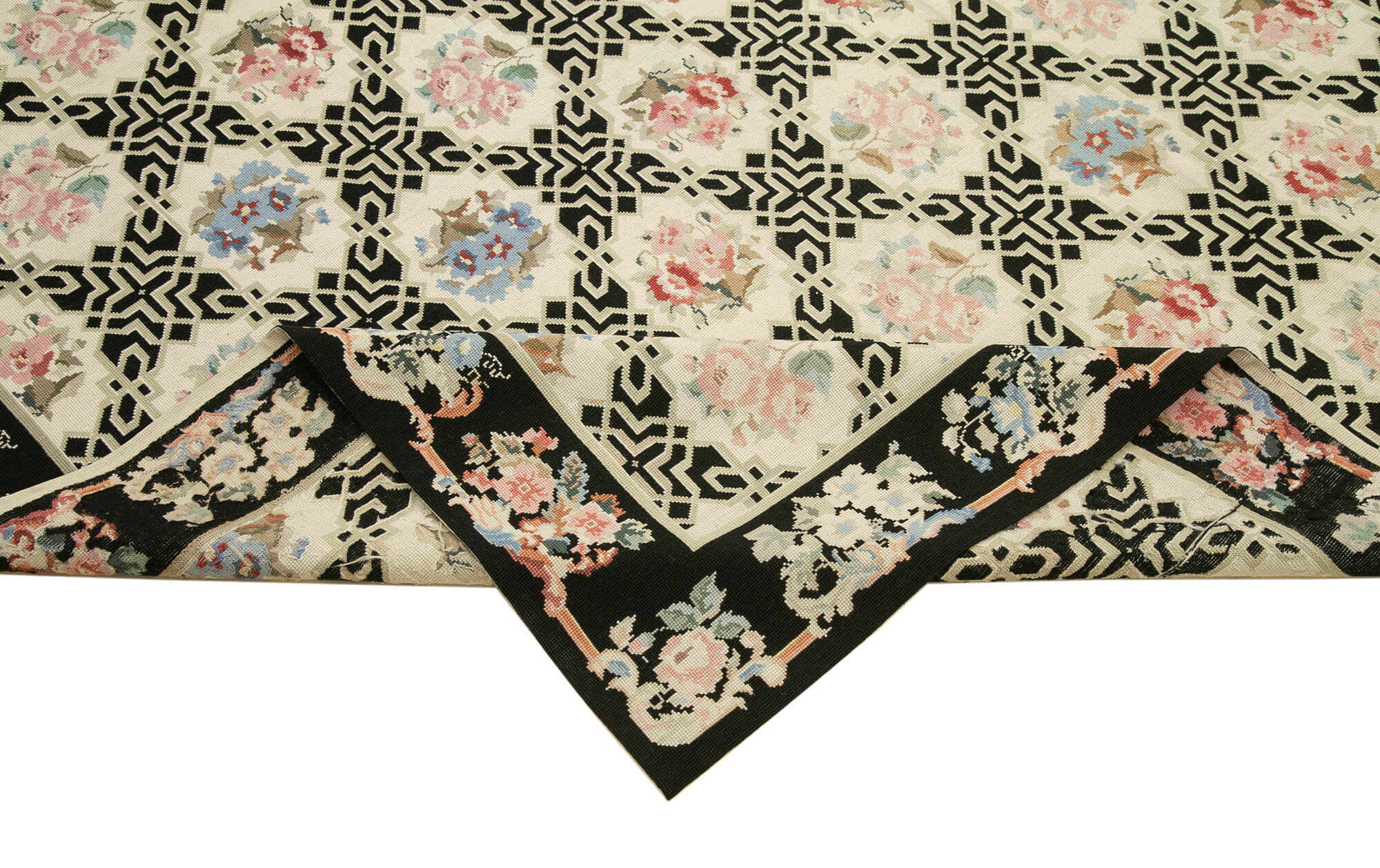 Needlepoint Floral Beige Floral Cotton Wool Handmade Area Rug 7'7'' x 9'6''