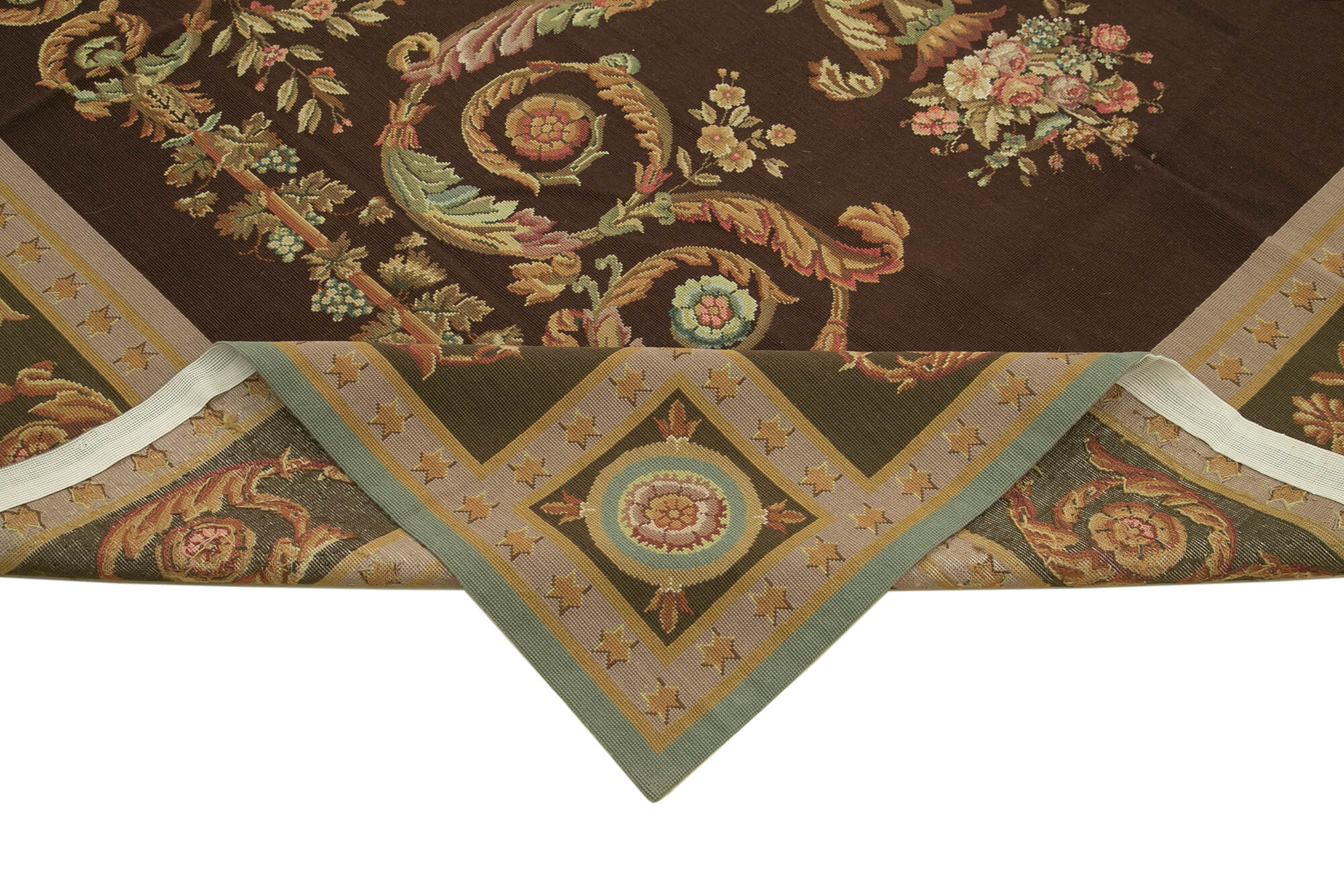 Needlepoint Floral Beige Floral Cotton Wool Handmade Area Rug 8'0'' x 10'0''