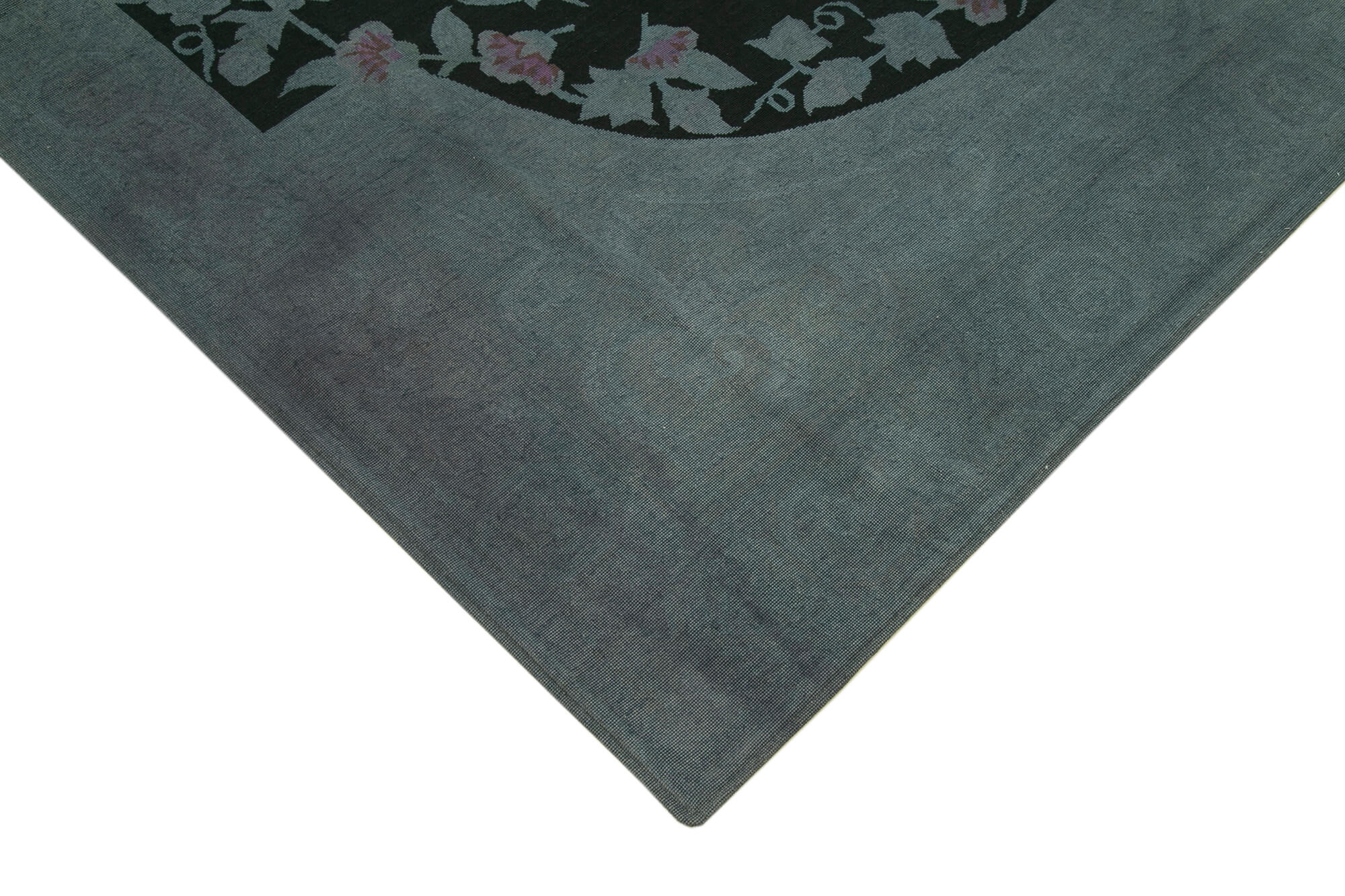 Needlepoint Grey Floral Cotton Wool Handmade Area Rug 7'7'' x 10'8''