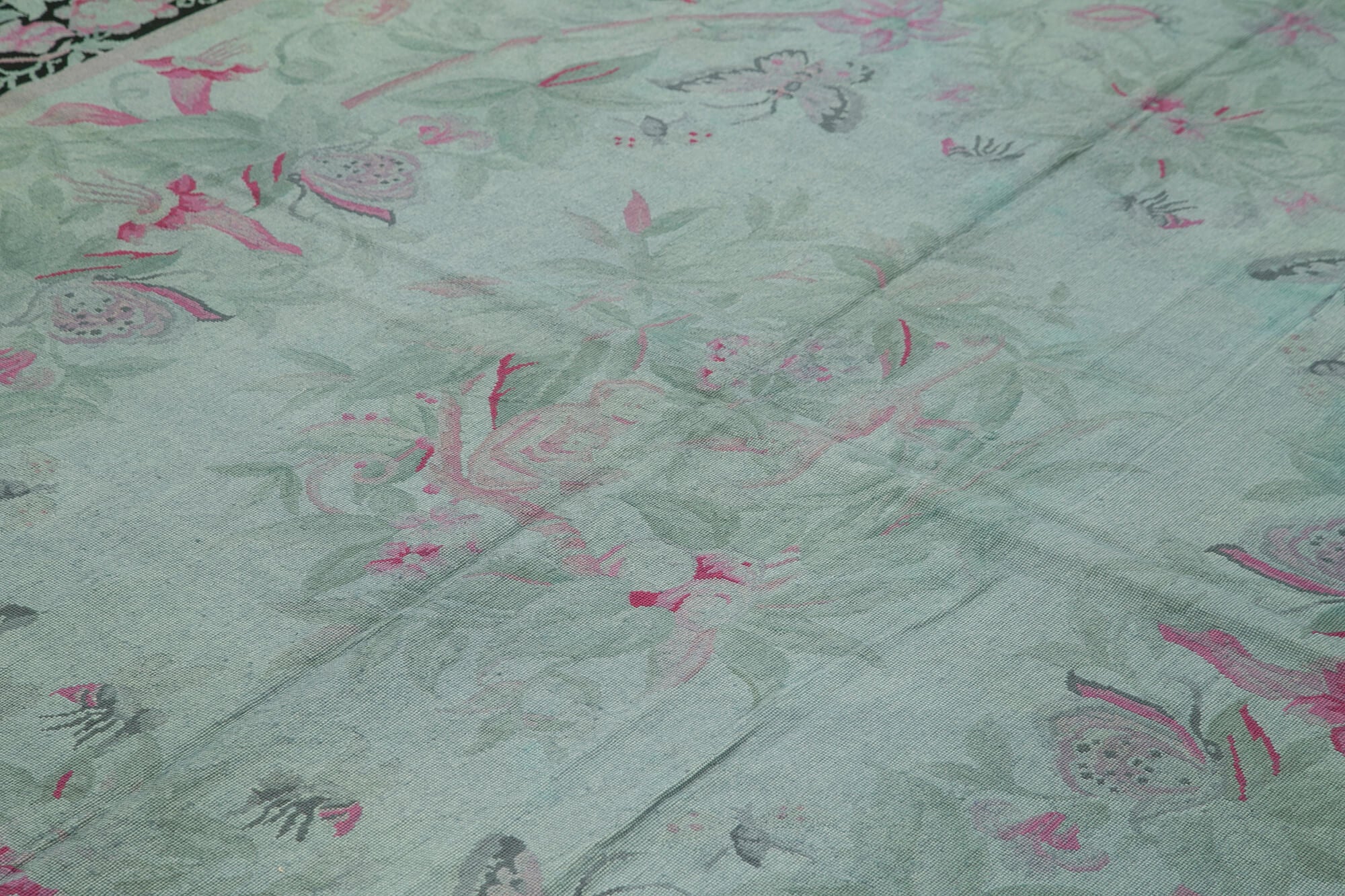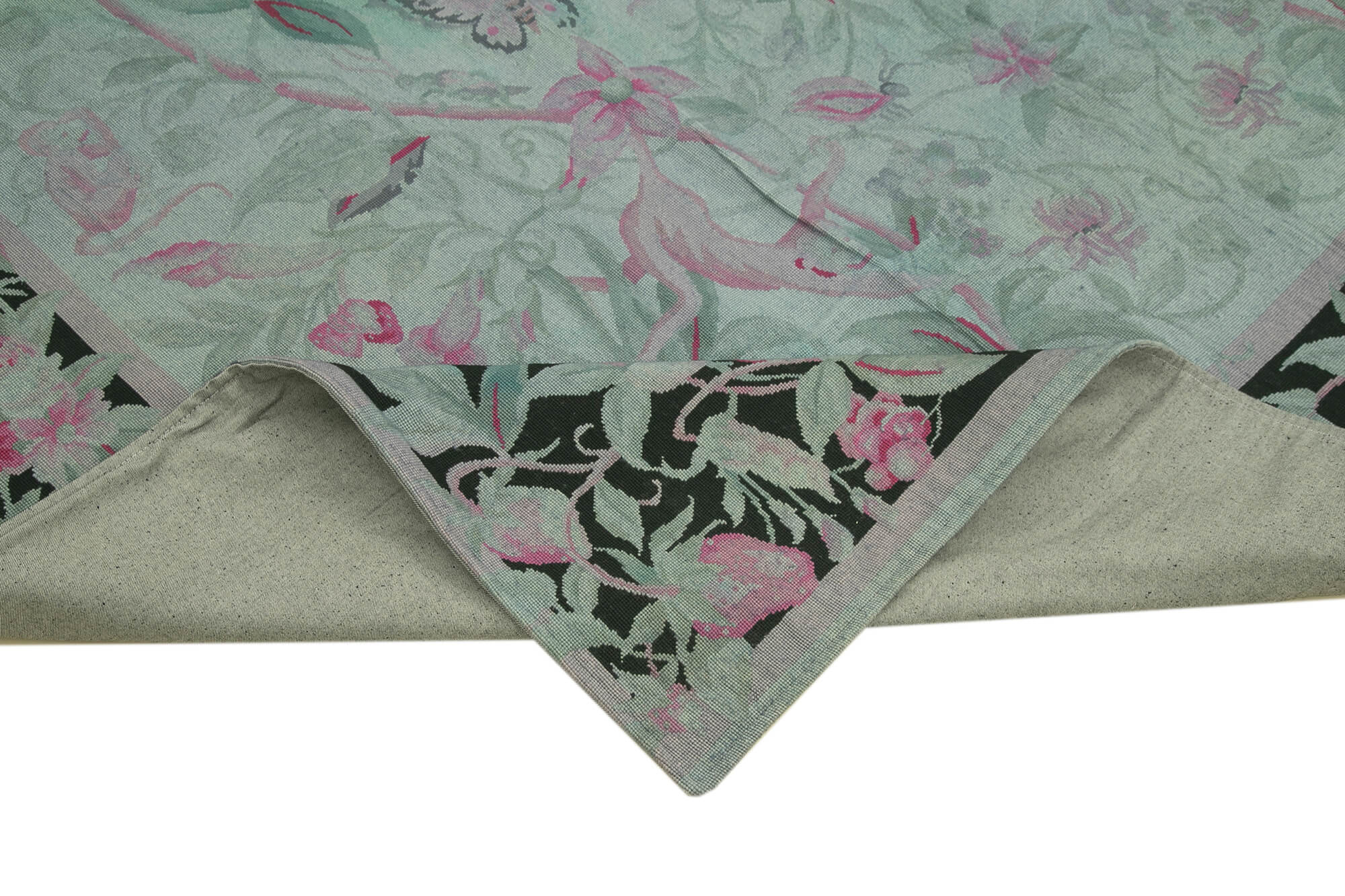 Needlepoint Grey Floral Cotton Wool Handmade Area Rug 7'9'' x 11'3''