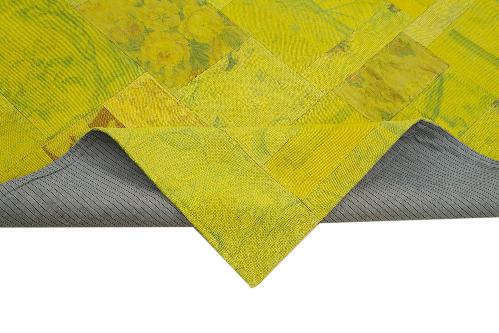 Needlepoint Yellow Floral Cotton Wool Handmade Area Rug 6'7'' x 9'11''