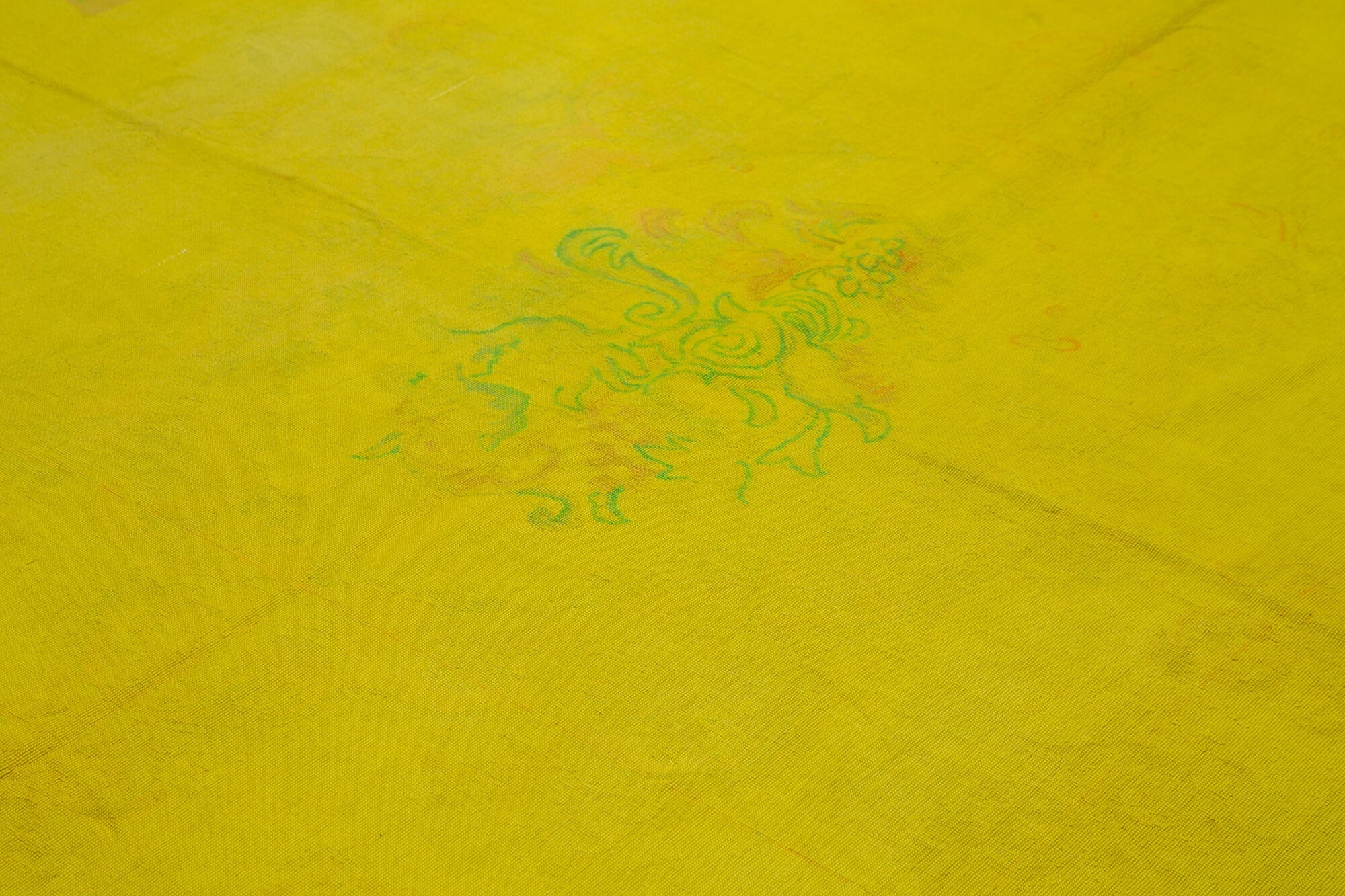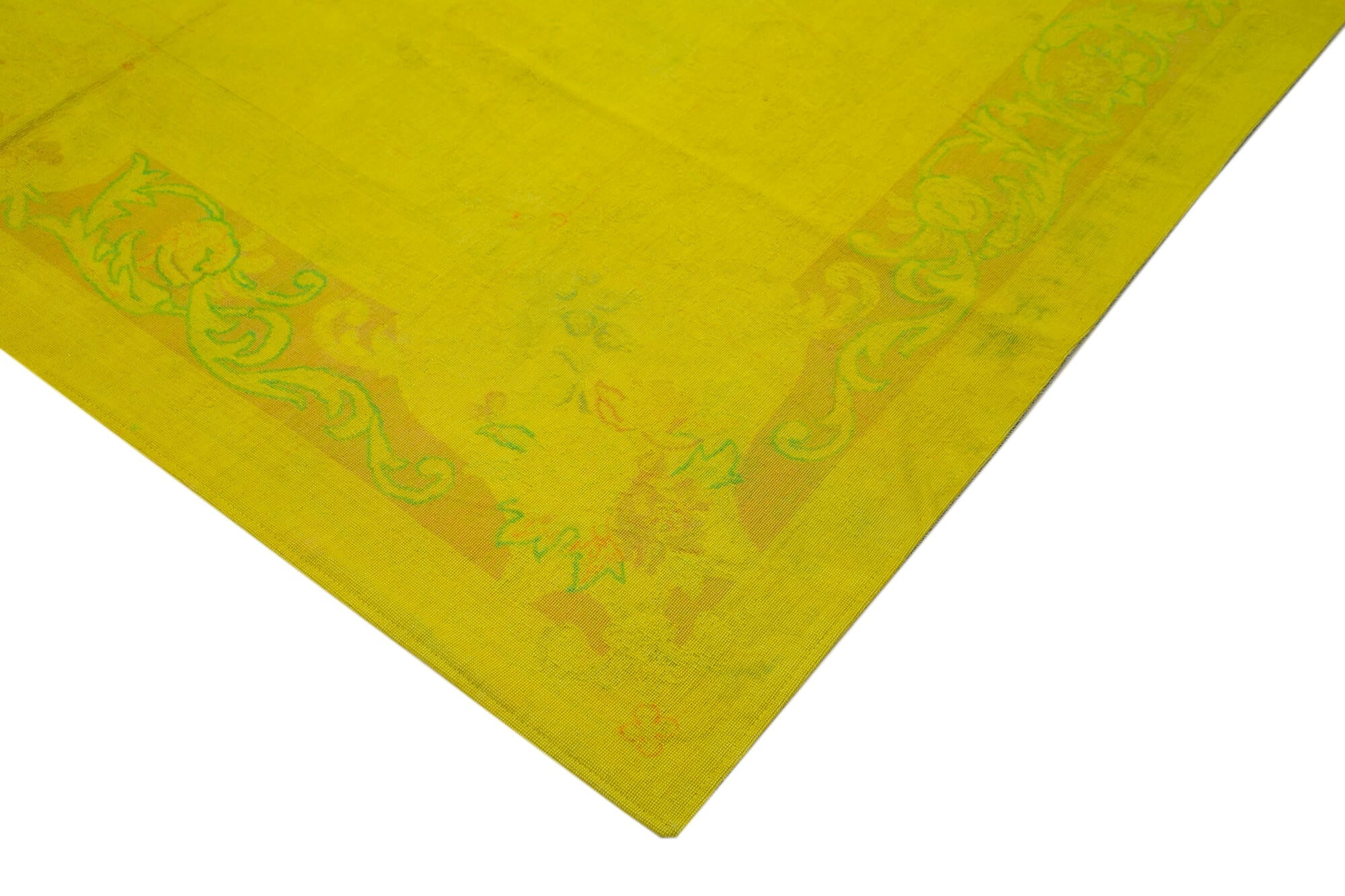 Handmade Area Rug – Needlepoint Yellow Floral Cotton Wool Carpet 7'5" x 9'3"