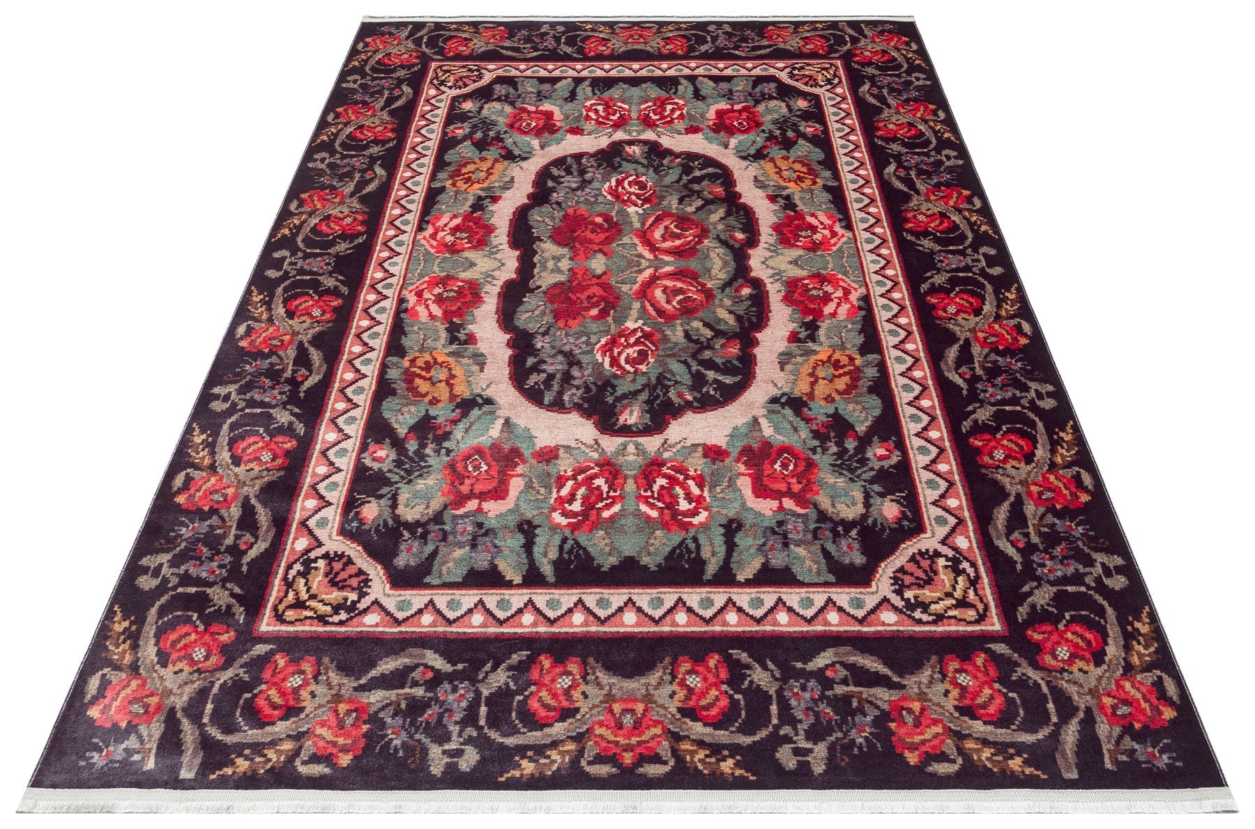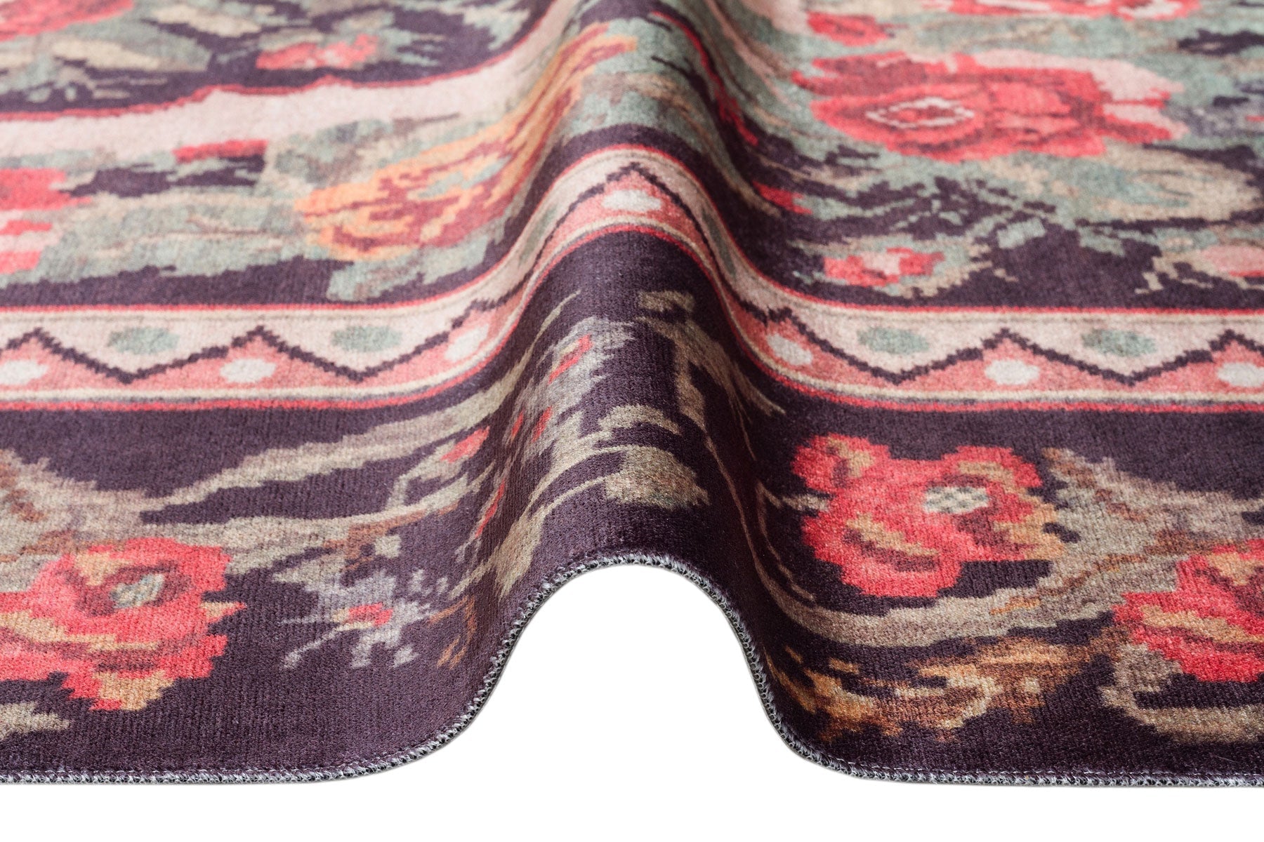 Upgrade your home with the Black Floral Area Rug that combines traditional Karabag style rug artistry with modern machine made production efficiency. Whether placed as a hallway area carpet or living room rug, it transforms spaces with its floral design carpet elegance and reliable black cotton rug durability. Choose this washable floor rug for effortless maintenance paired with lasting comfort and style.