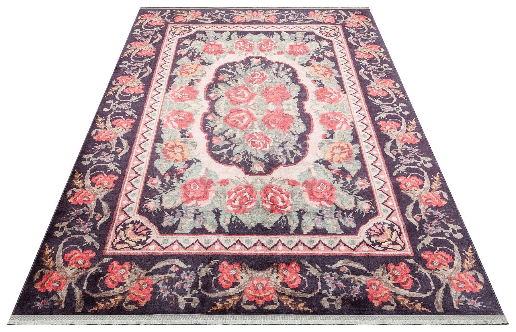 Crafted in the Karabag style rug tradition, this cotton area rug measures precise dimensions to fit standard living spaces comfortably. The machine made rug technique guarantees consistent quality and intricate floral design carpet details that bring a timeless look to your home décor. Tested for colorfastness and durability, this black cotton rug comes with a warranty ensuring long-lasting satisfaction.