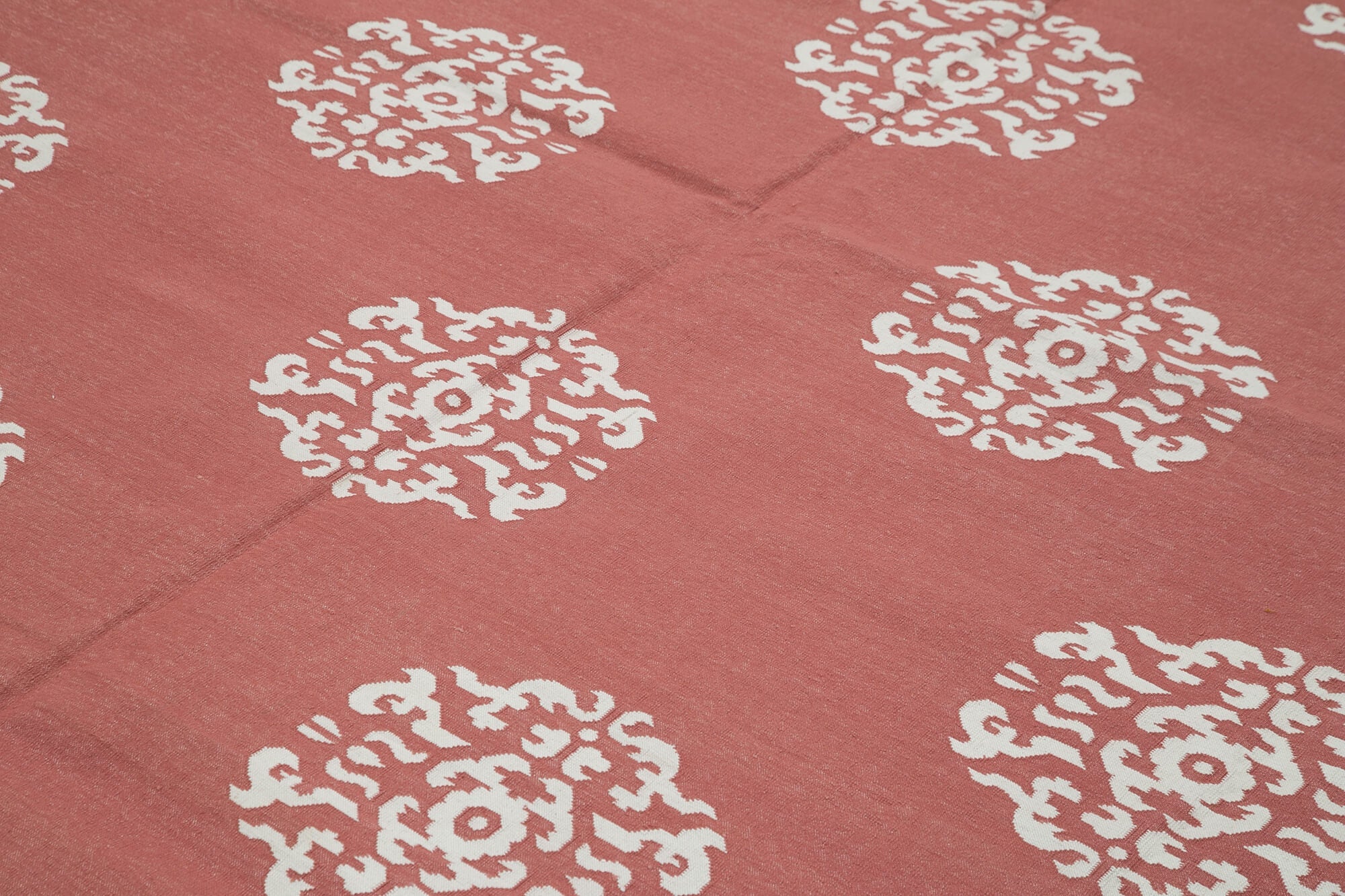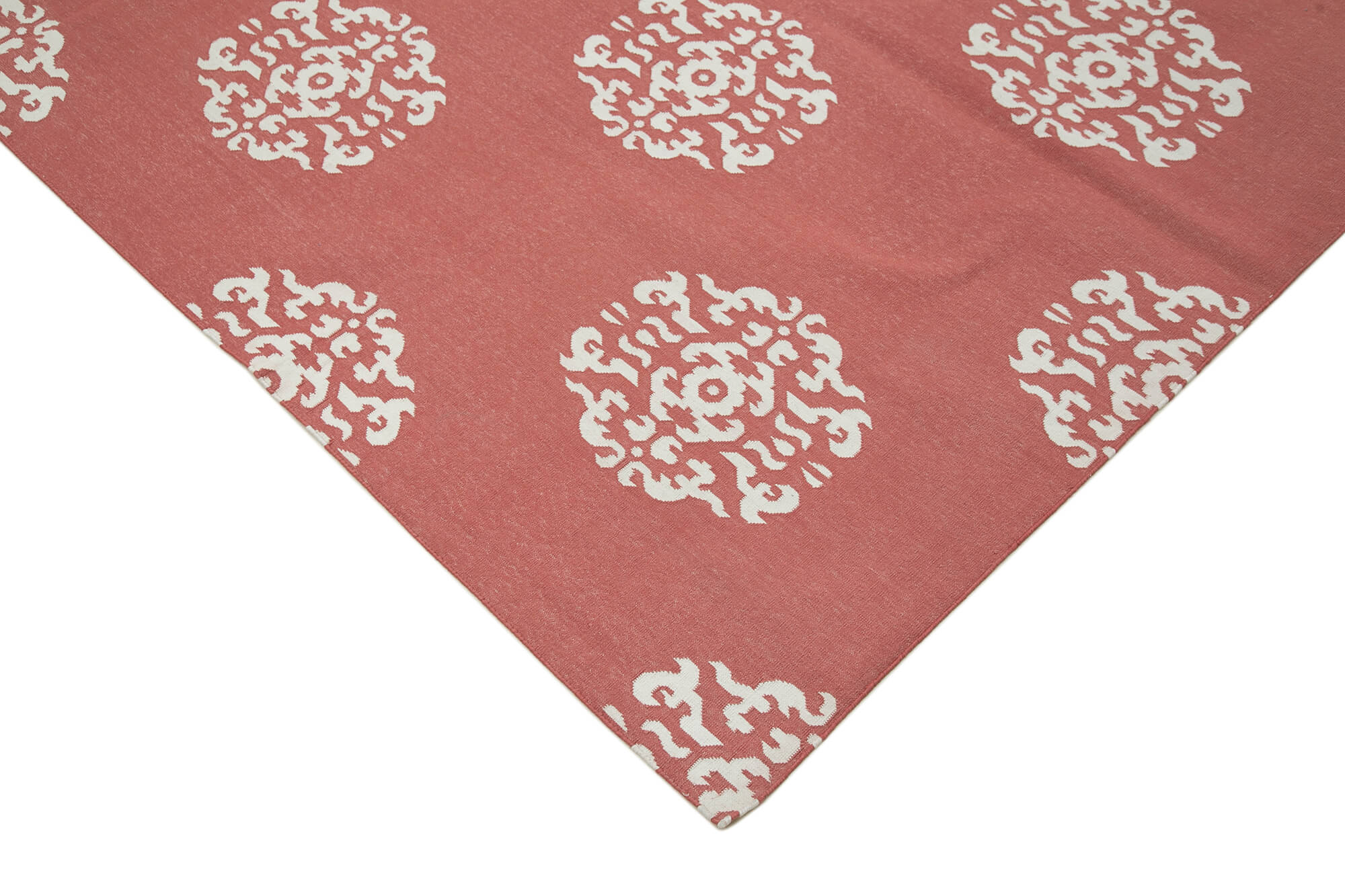 Handmade Area Rug - Red Geometric Cotton Wool Carpet 9'1'' x 11'7'' | Durable Hand Knotted Rug