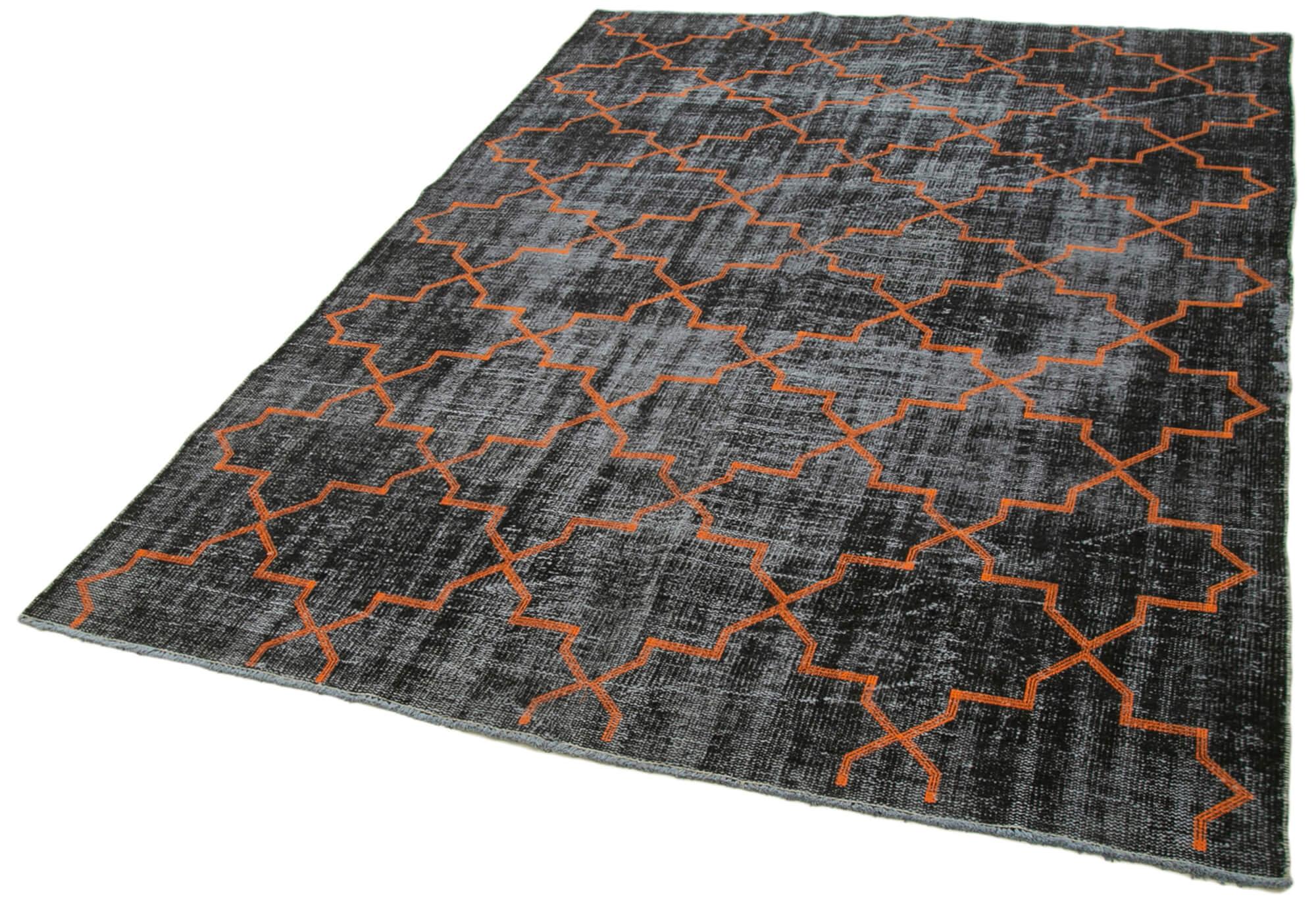 Geometric Carpet Black Geometric Cotton Wool Handmade Area Rug 5'10'' x 8'7''