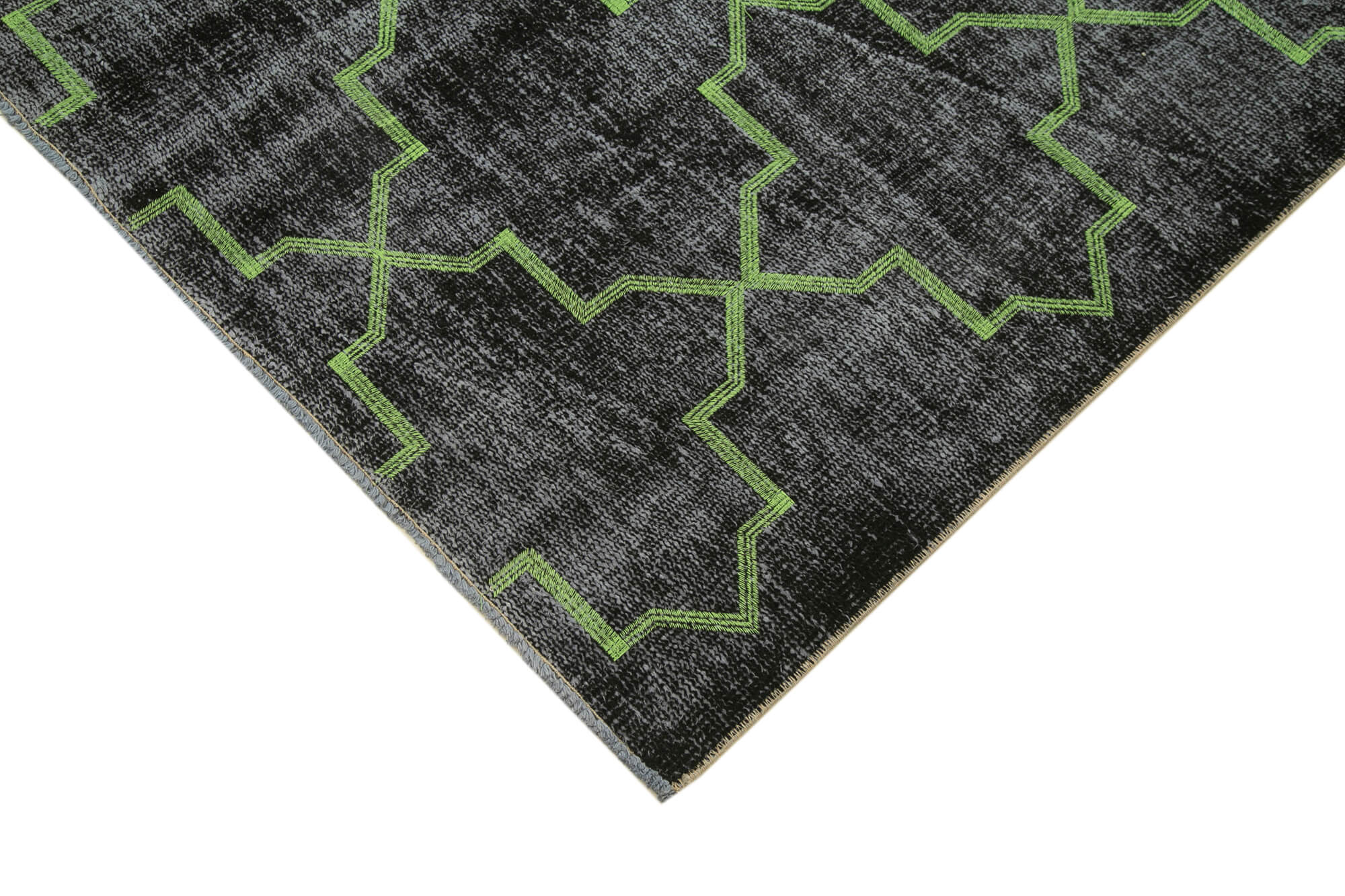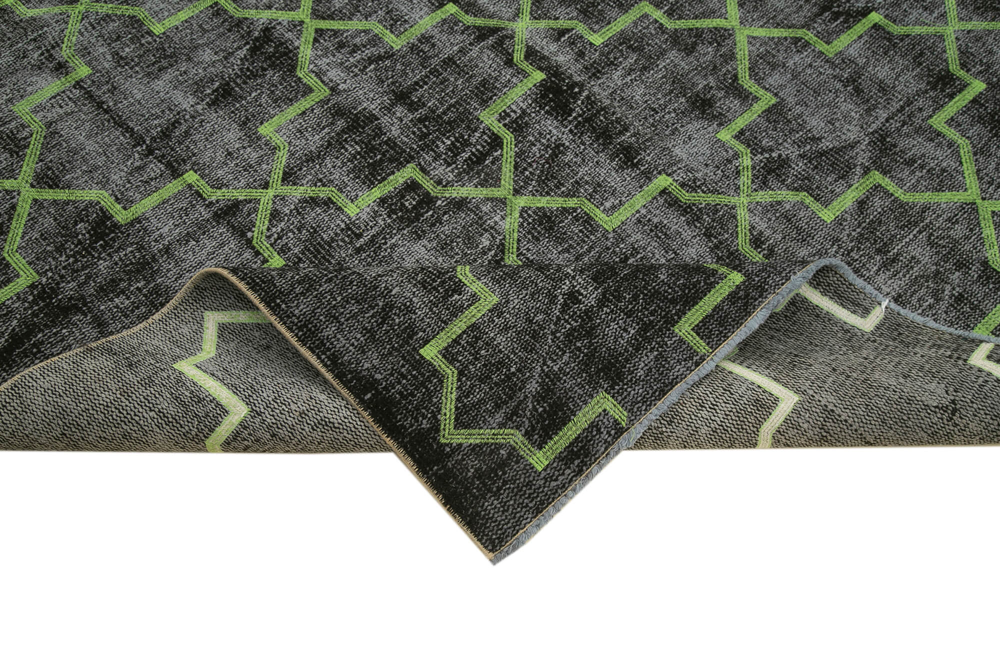 Geometric Carpet Black Geometric Cotton Wool Handmade Area Rug 6'0'' x 8'9''