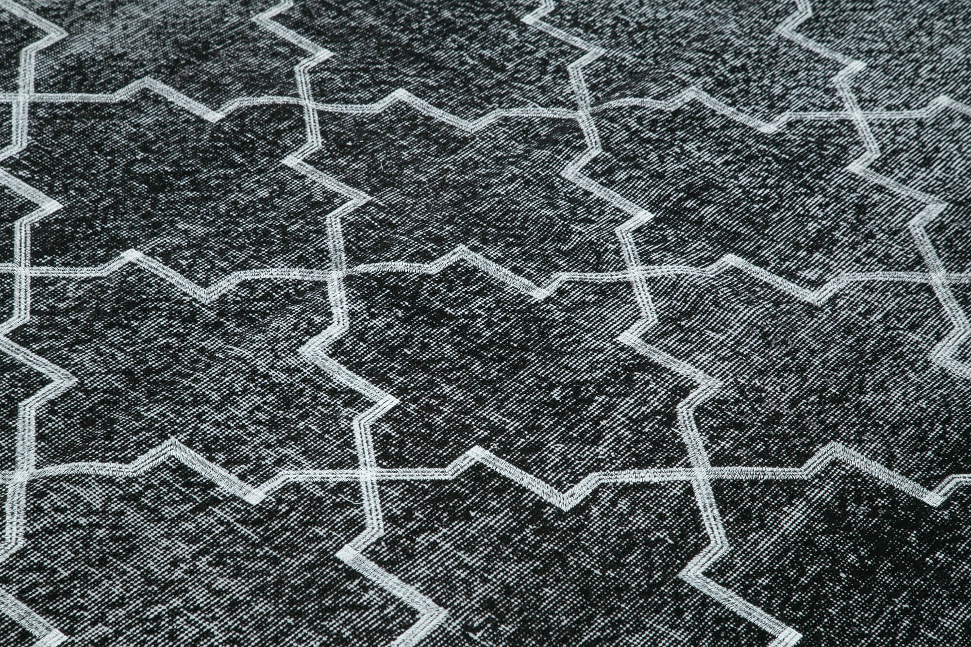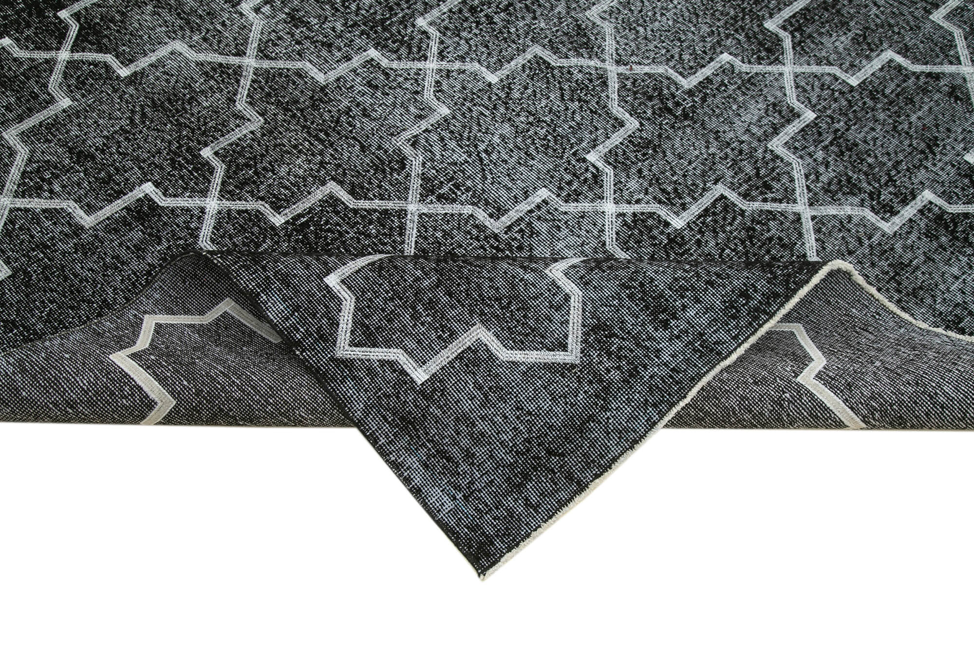 Geometric Carpet Black Geometric Cotton Wool Handmade Area Rug 7'7'' x 9'10''