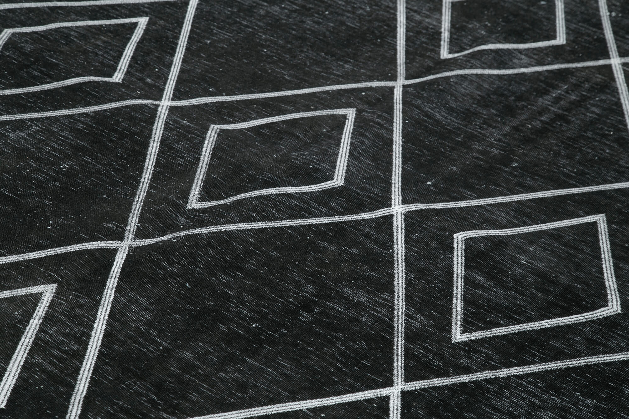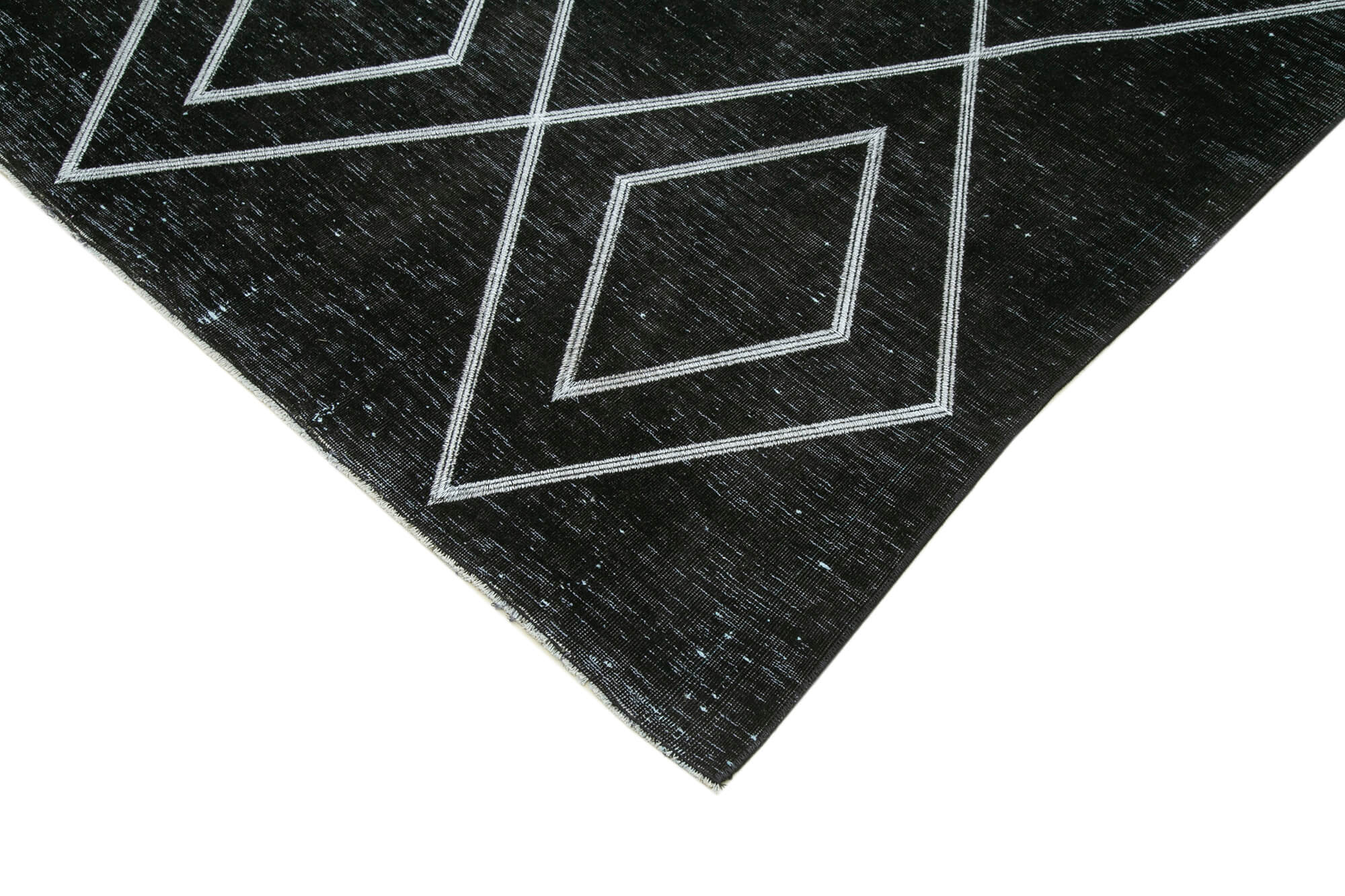 Geometric Carpet Black Geometric Cotton Wool Handmade Area Rug 9'4'' x 13'5''