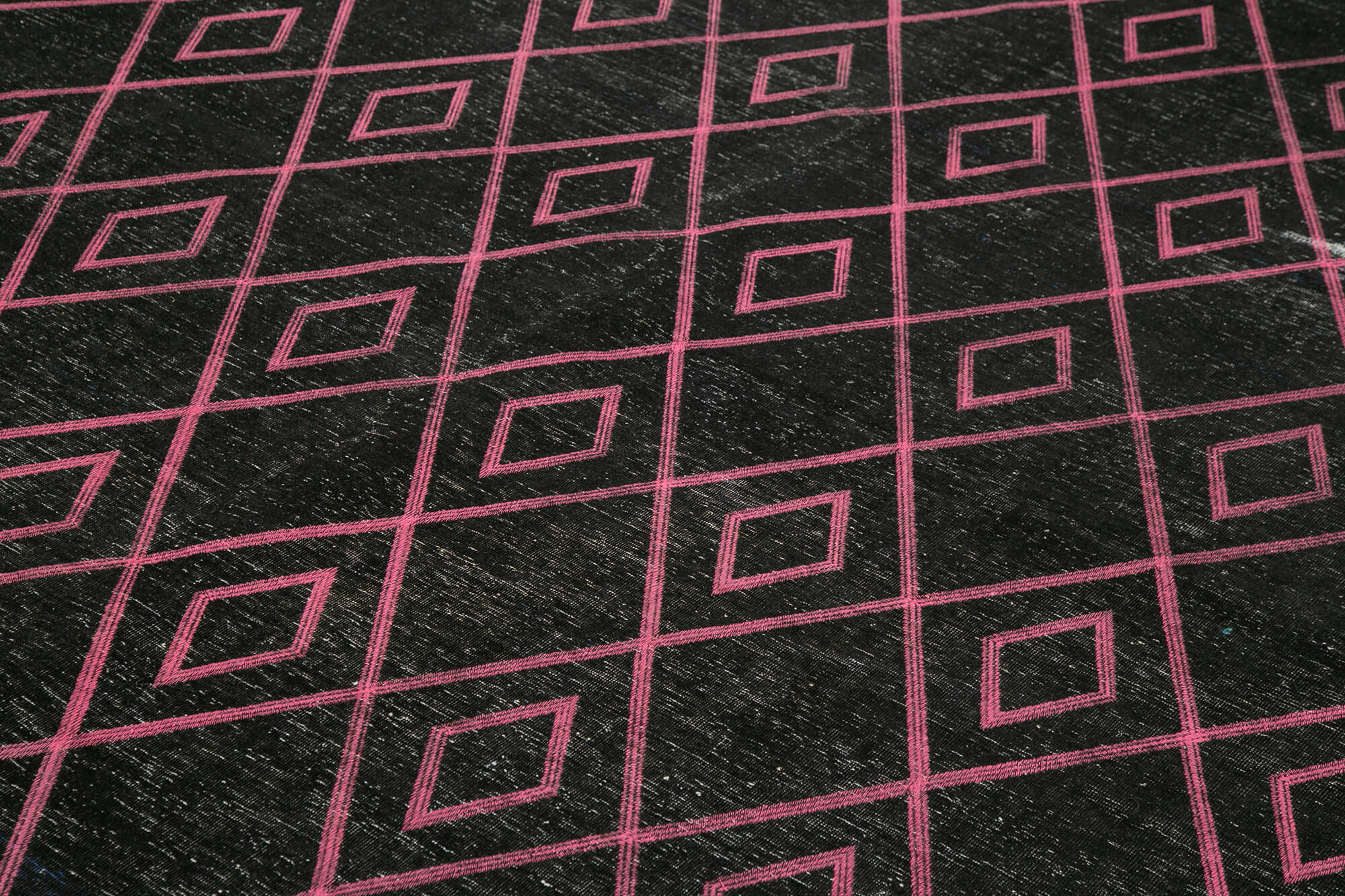 Geometric Carpet Black Geometric Cotton Wool Handmade Area Rug 9'4'' x 13'6''