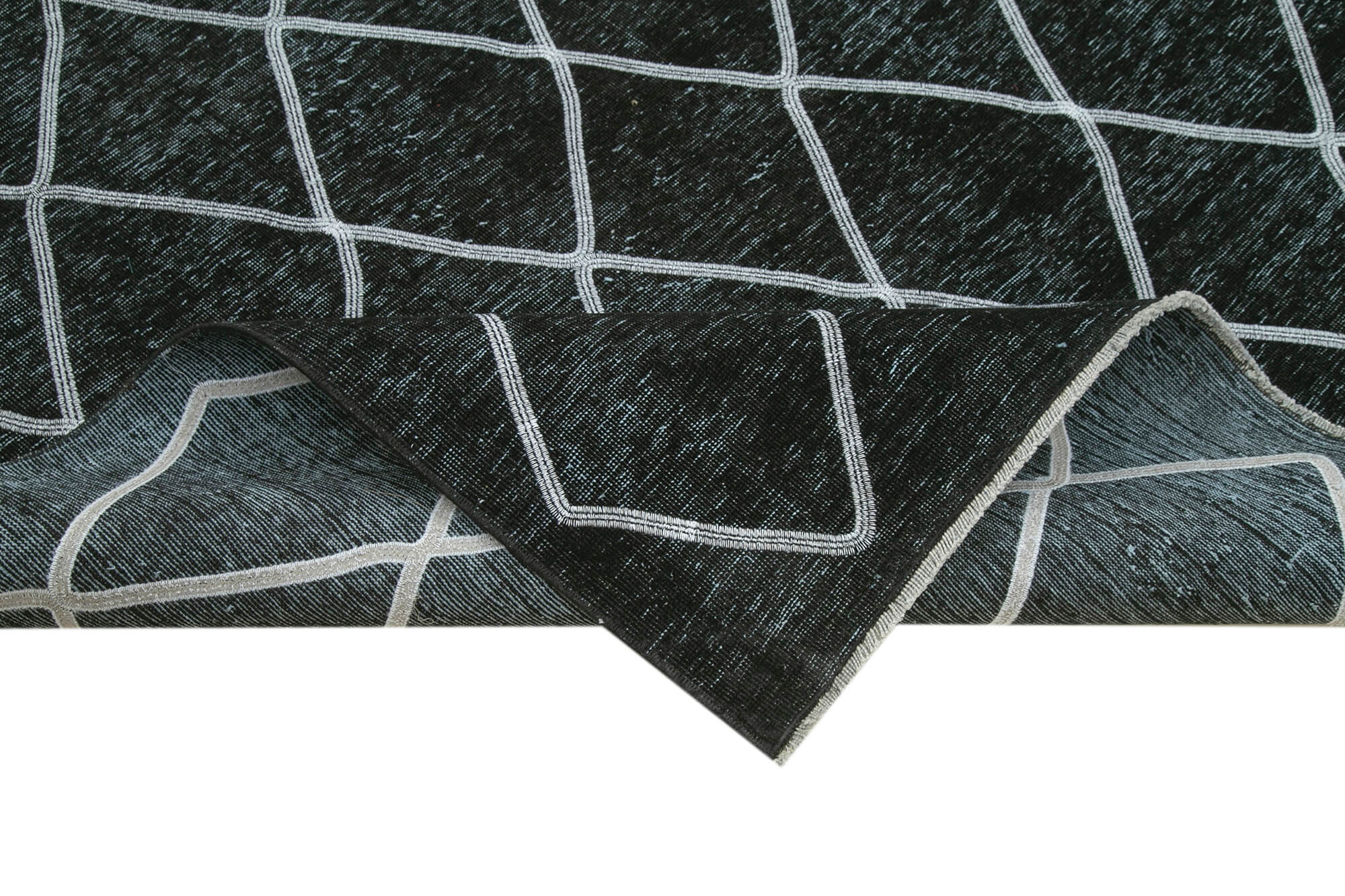 Geometric Carpet Black Geometric Cotton Wool Handmade Area Rug 9'5'' x 12'9''