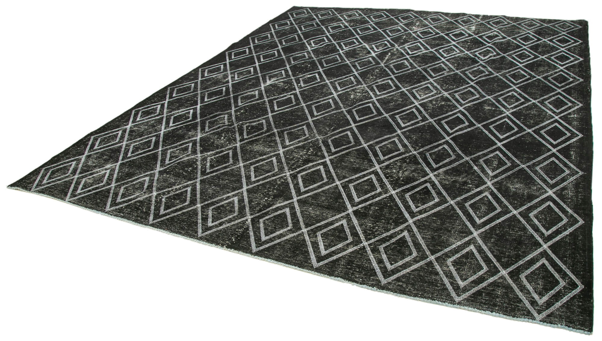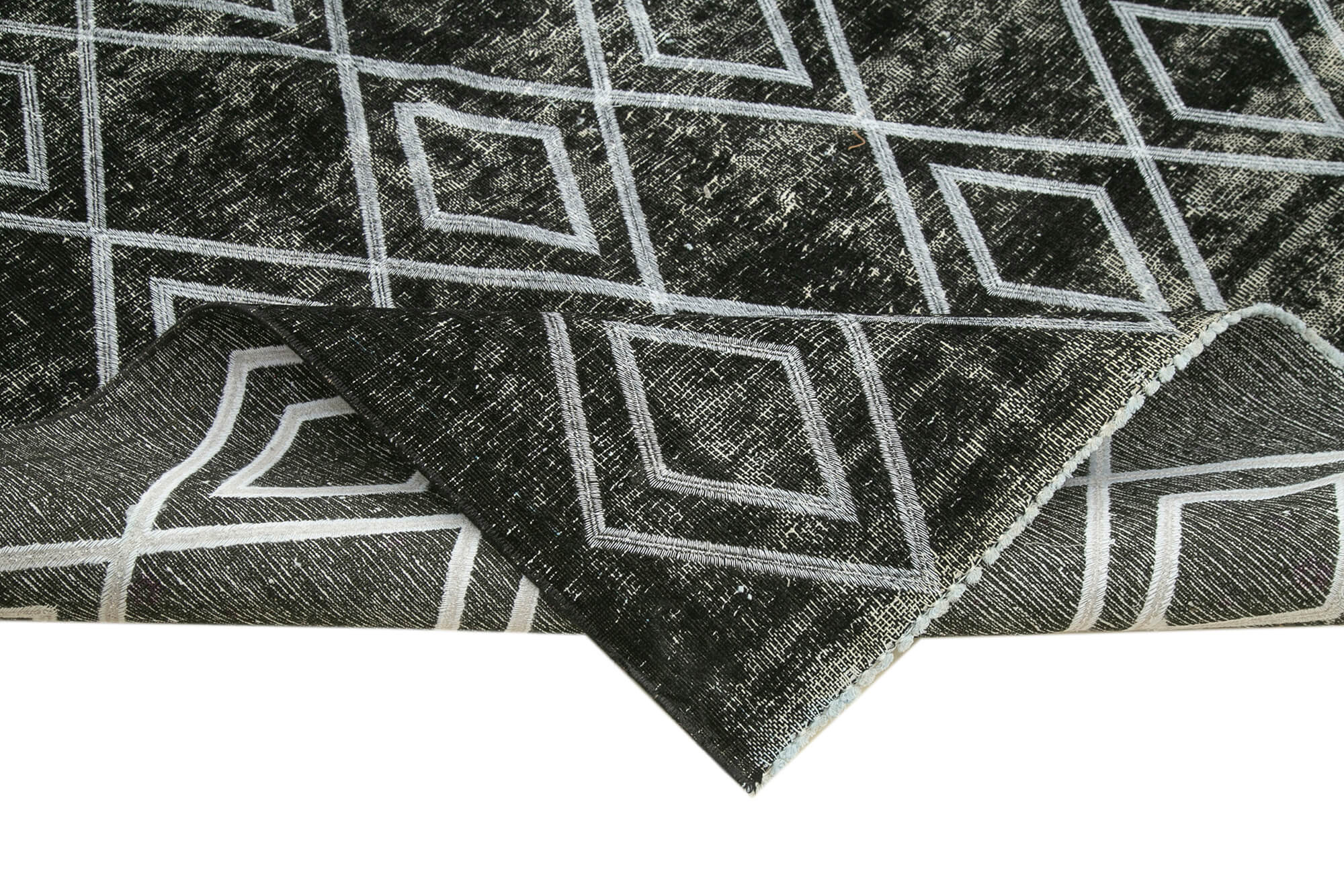 Geometric Carpet Black Geometric Cotton Wool Handmade Area Rug 9'6'' x 12'1''