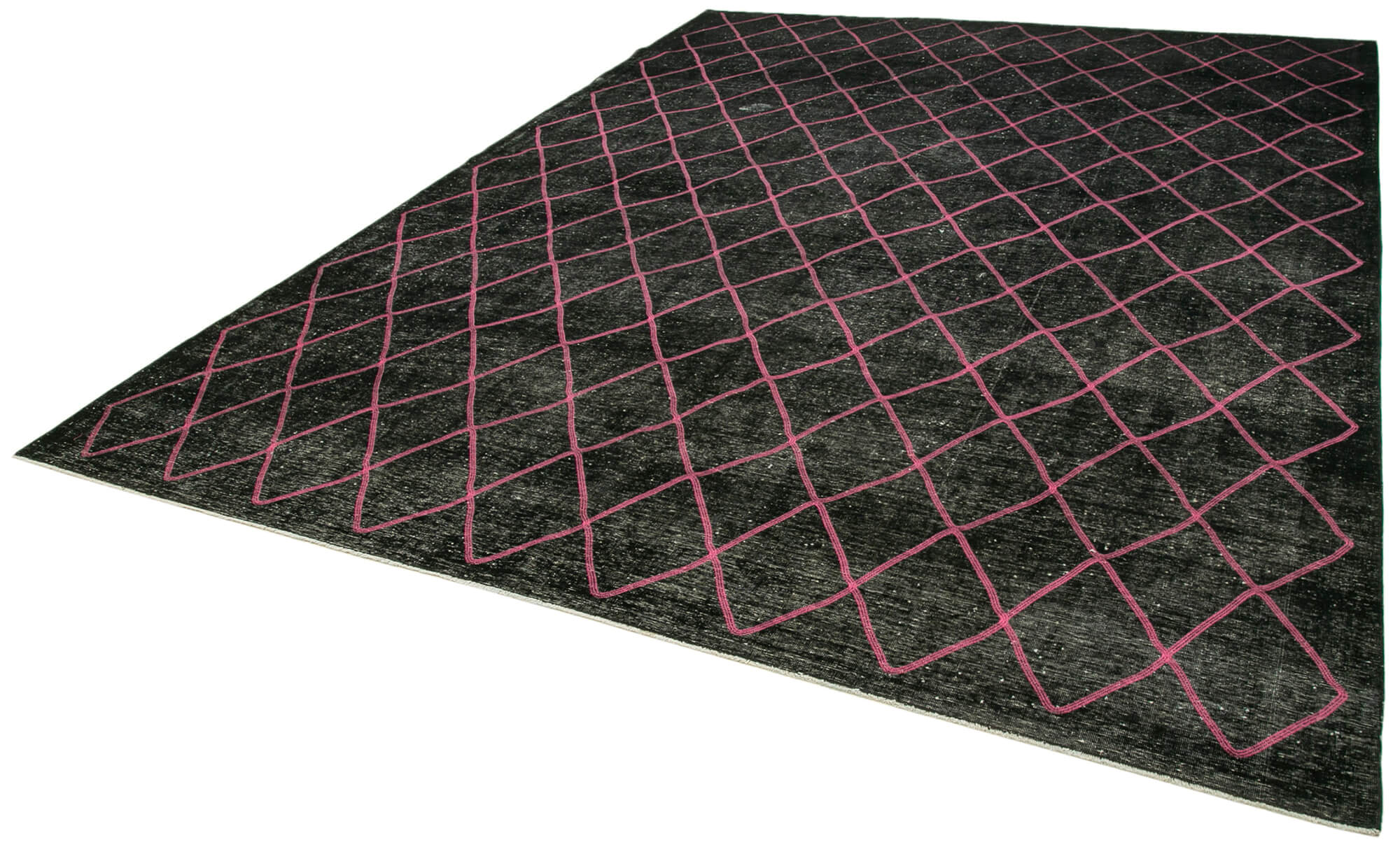 Geometric Carpet Black Geometric Cotton Wool Handmade Area Rug 9'7'' x 12'10''