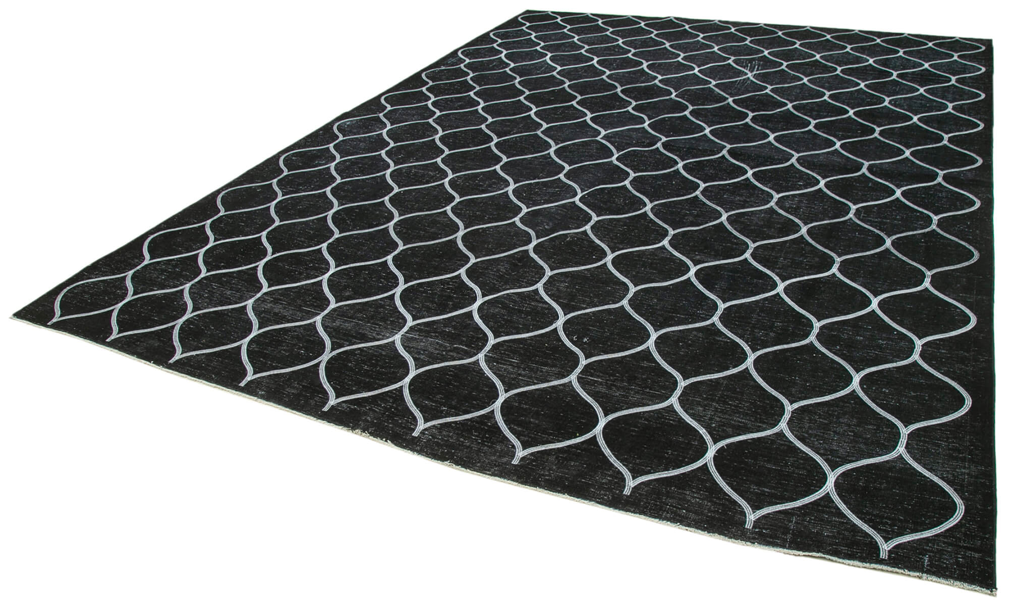 Geometric Carpet Black Geometric Cotton Wool Handmade Area Rug 9'7'' x 13'4''