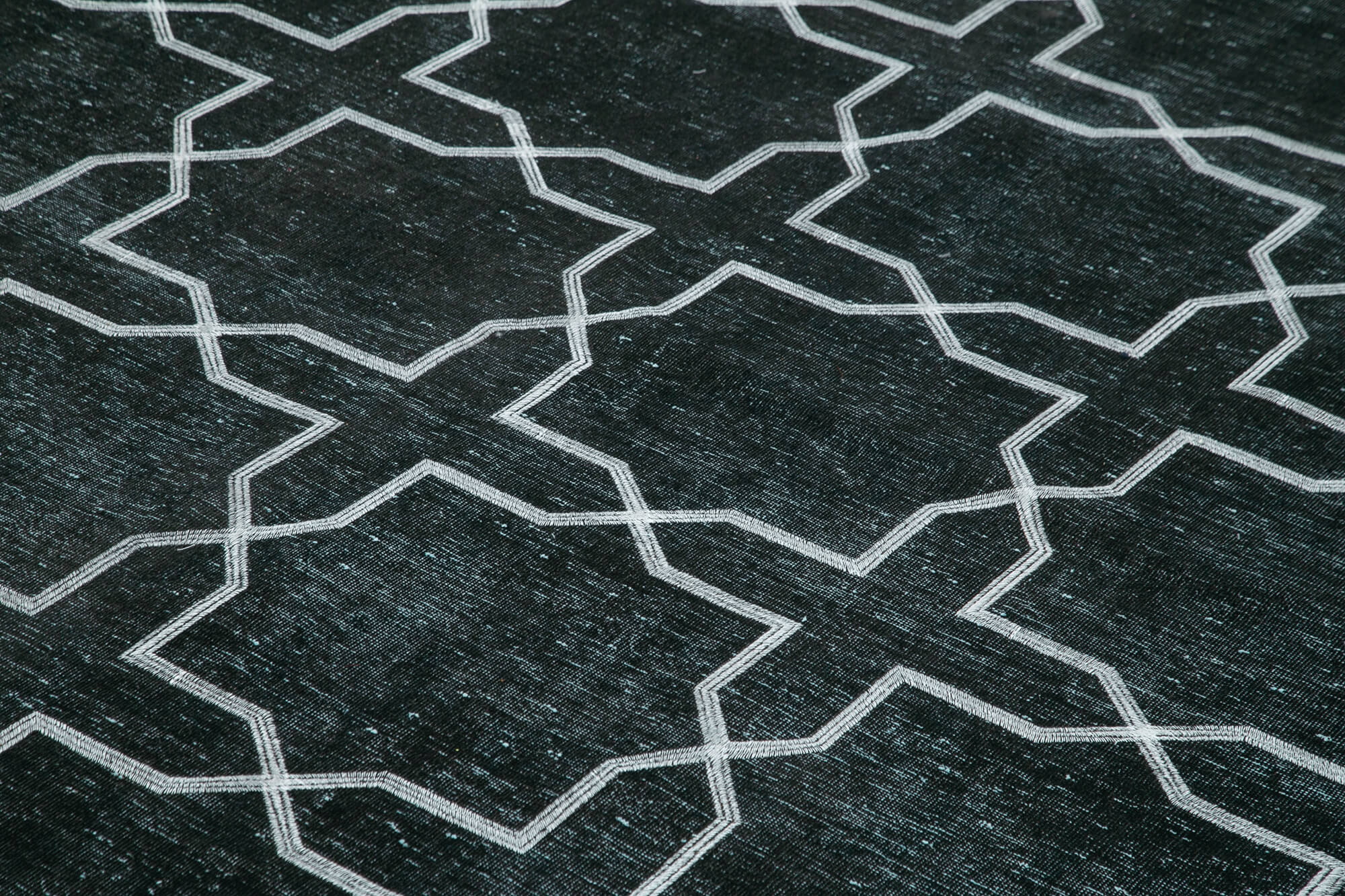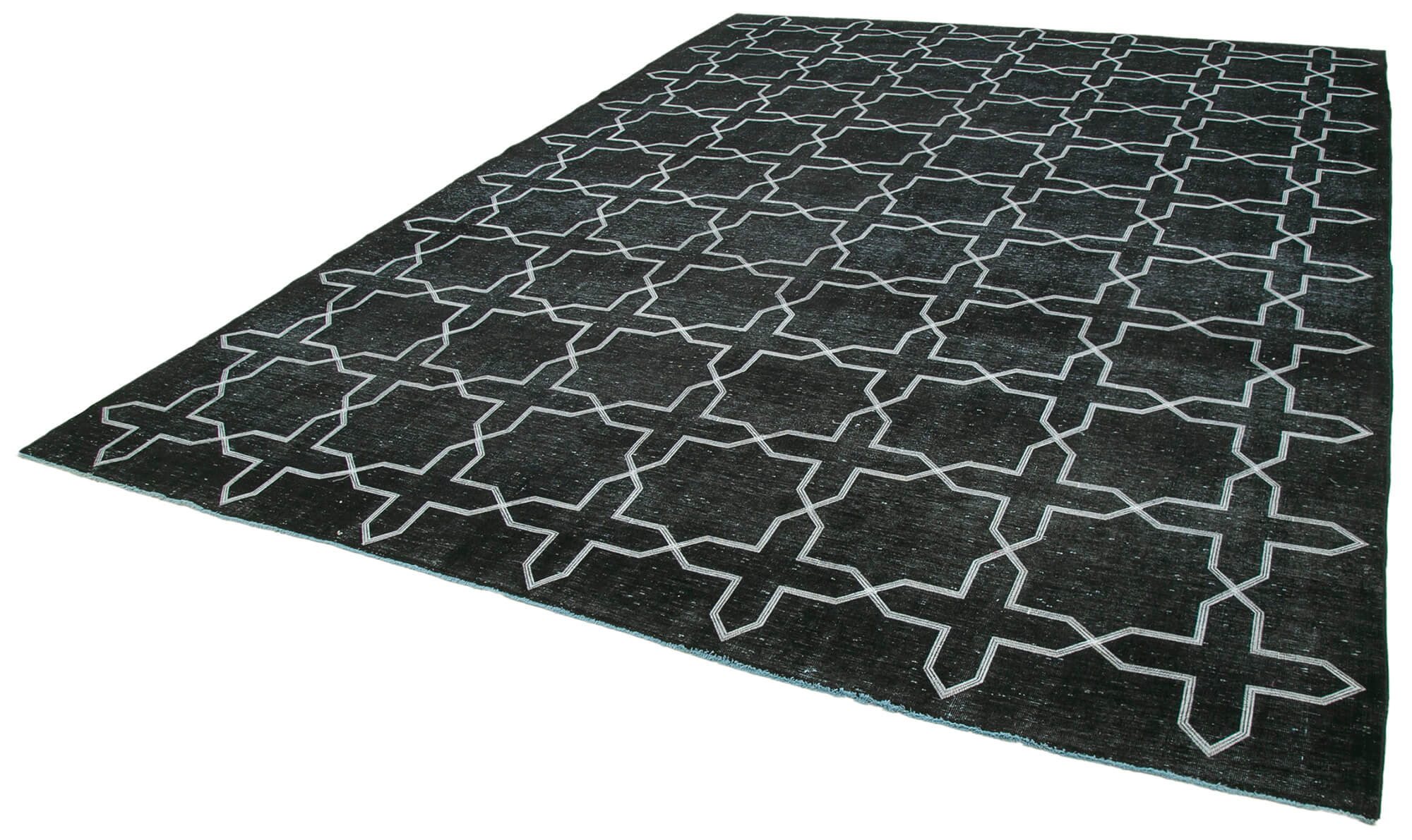 Geometric Carpet Black Geometric Cotton Wool Handmade Area Rug 9'10'' x 13'3''