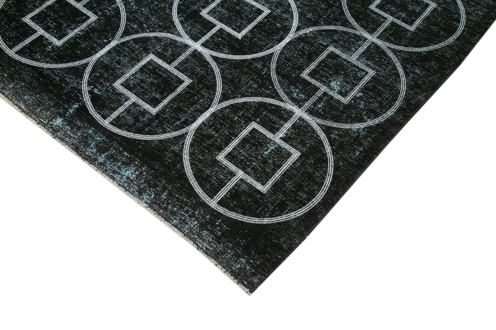 Geometric Carpet Black Geometric Cotton Wool Handmade Area Rug 9'11'' x 12'4''