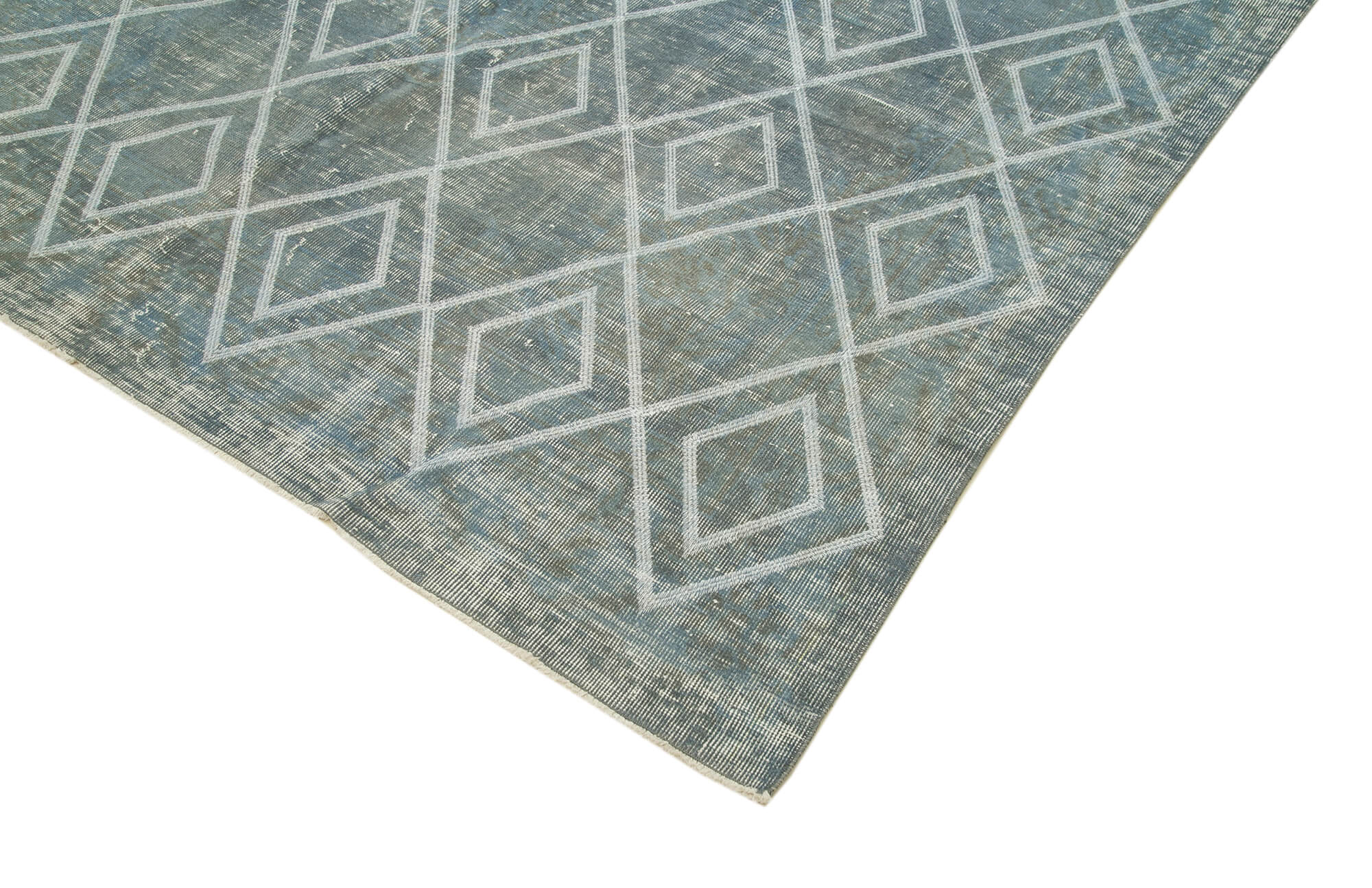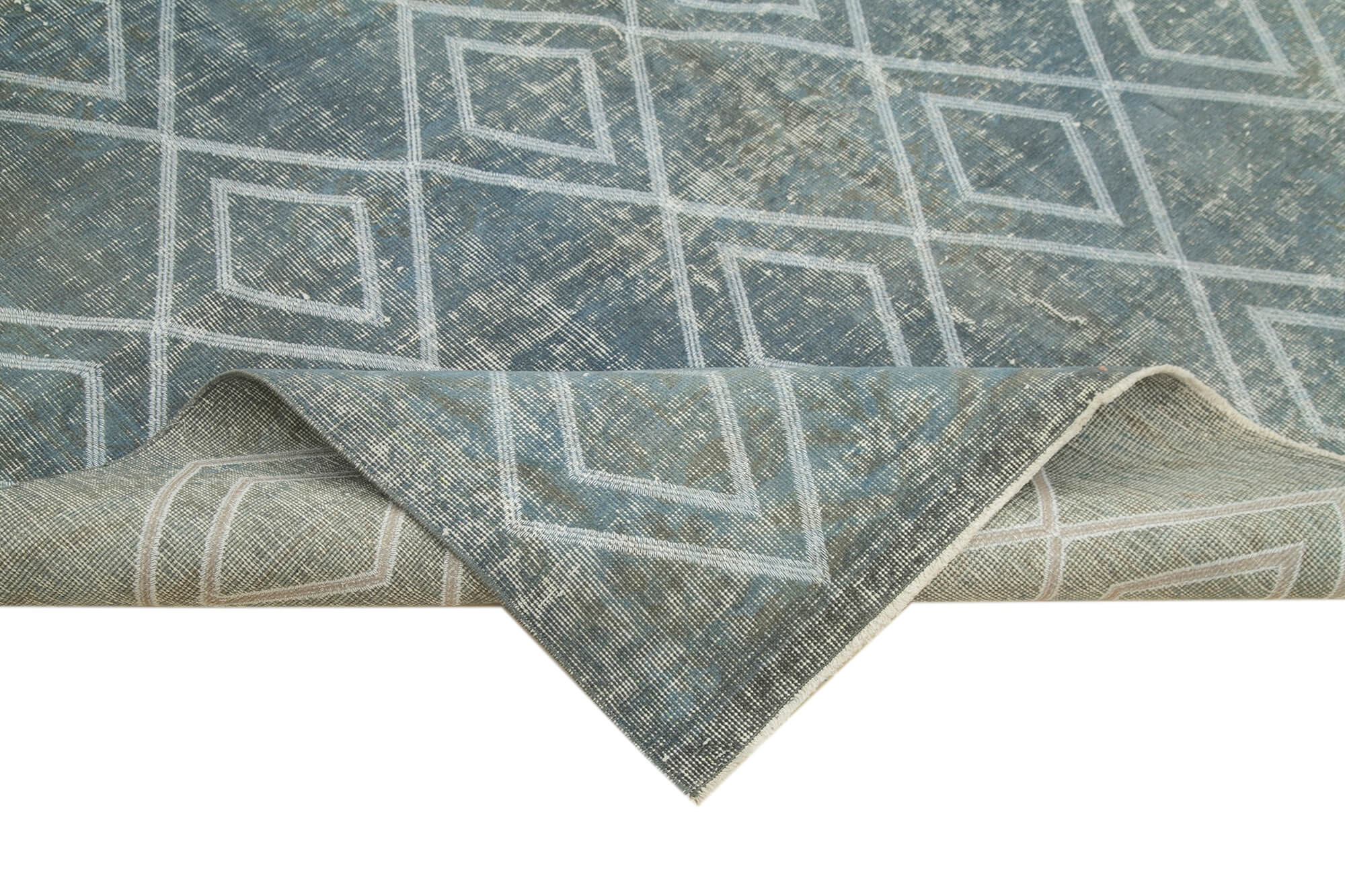 Geometric Carpet Blue Geometric Cotton Wool Handmade Area Rug 6'4'' x 9'8''