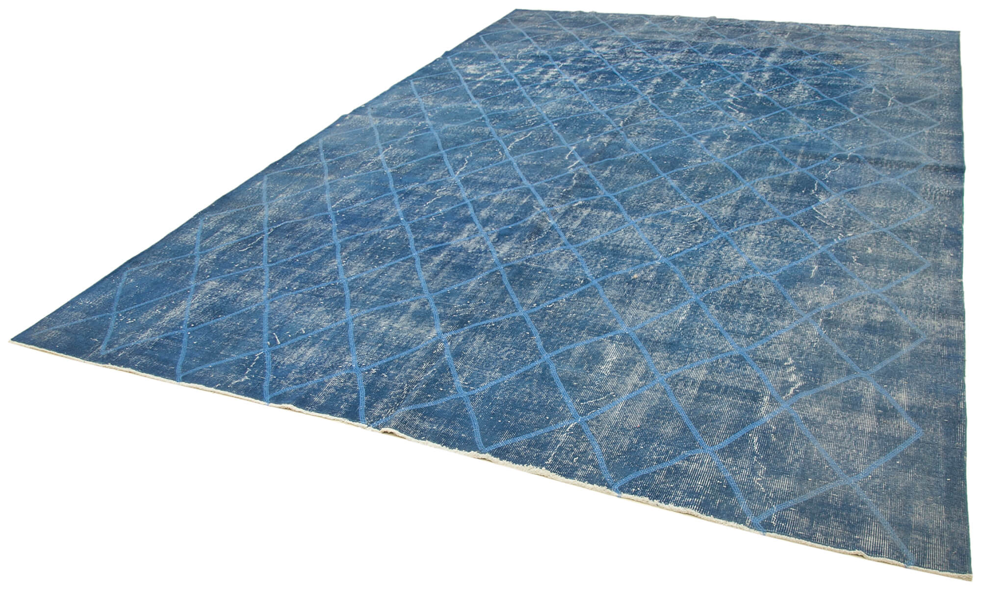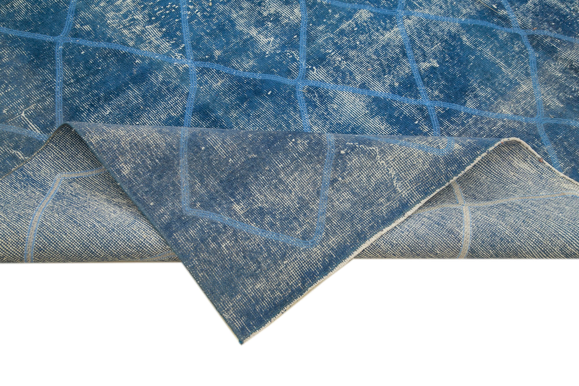 Geometric Carpet Blue Geometric Cotton Wool Handmade Area Rug 8'9'' x 12'6''