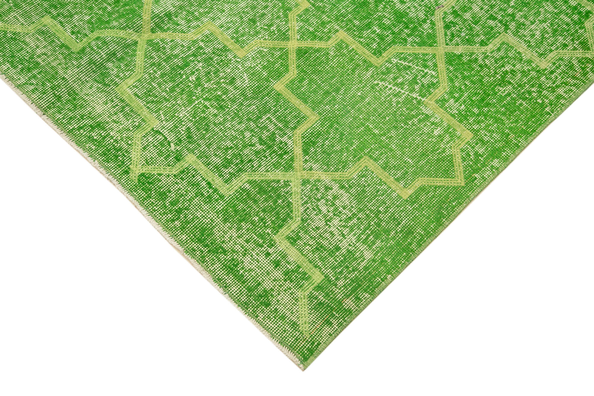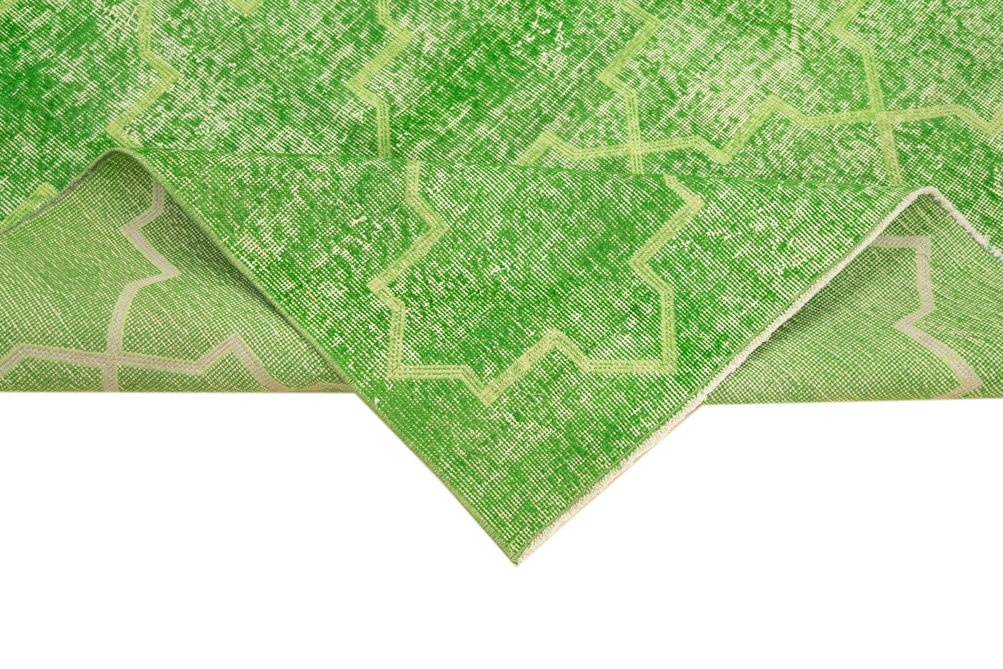 Geometric Carpet Green Geometric Cotton Wool Handmade Area Rug 4'9'' x 9'2''