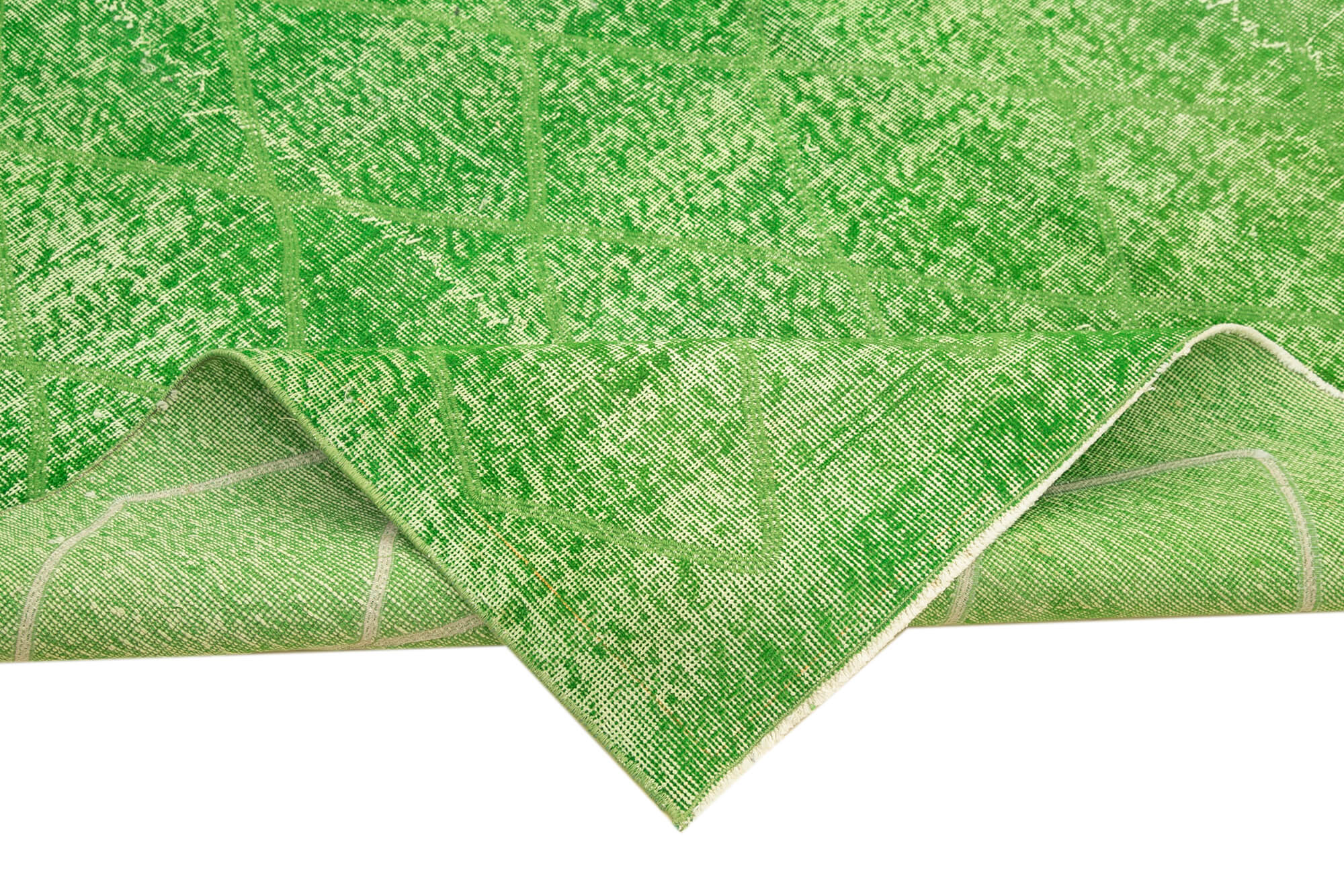 Geometric Carpet Green Geometric Cotton Wool Handmade Area Rug 6'5'' x 9'9''