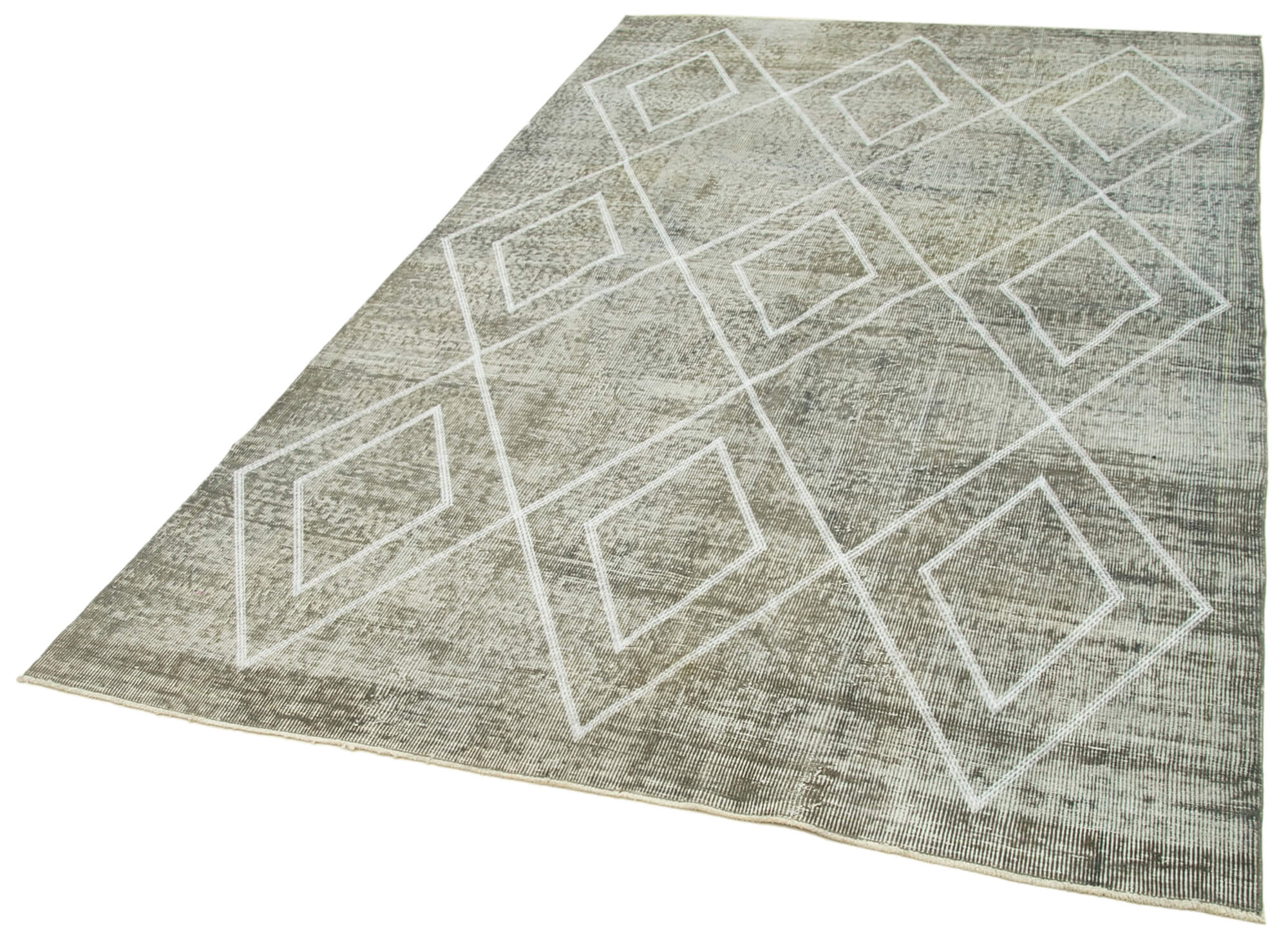 Geometric Carpet Grey Geometric Cotton Wool Handmade Area Rug 5'2'' x 8'5''