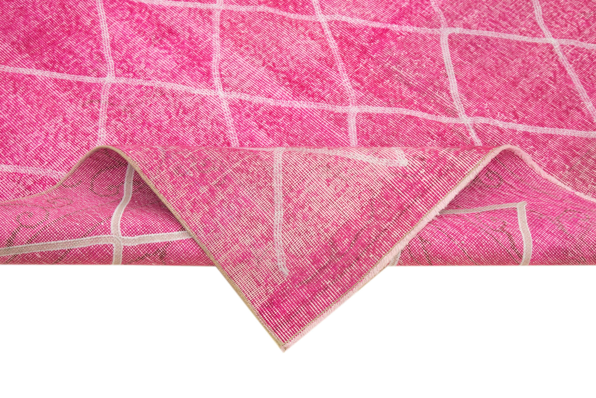 Geometric Carpet Pink Geometric Cotton Wool Handmade Area Rug 6'4'' x 10'4''