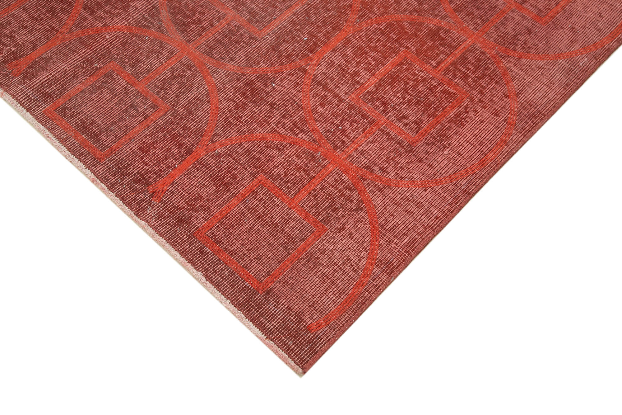 Geometric Carpet Red Geometric Cotton Wool Handmade Area Rug 6'9'' x 10'0''